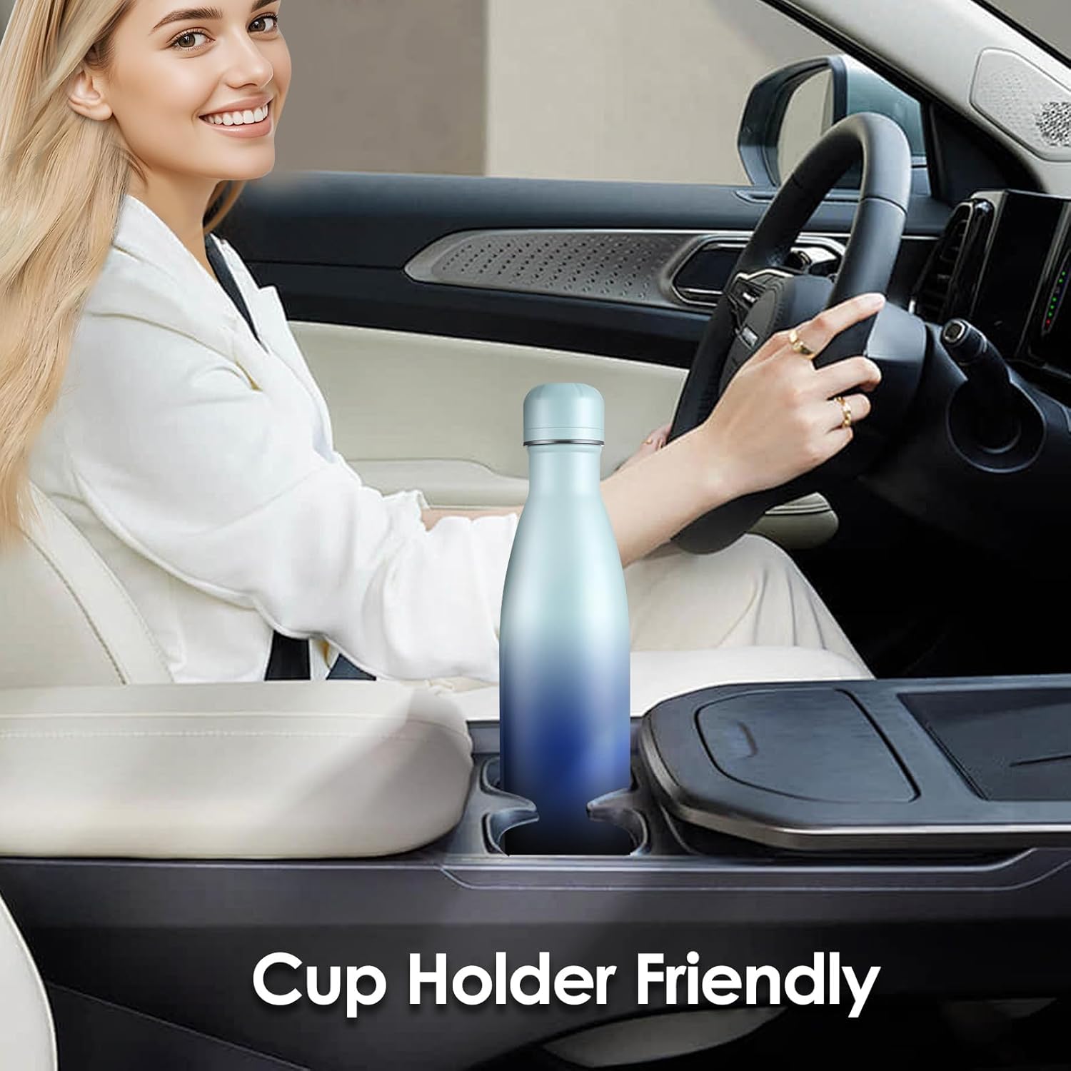 - 《Portable Size and Wide Use》17oz insulated water bottle is the good size for kids and adults.With a portable lid and light weight so you can carry it anywhere with ease.The Convenient bottle is the good choice for the bike or car cup holder,side pockets of backpack,gym,school,work,camping hiking biking beach trips,picnics and any other indoor or outdoor activity.