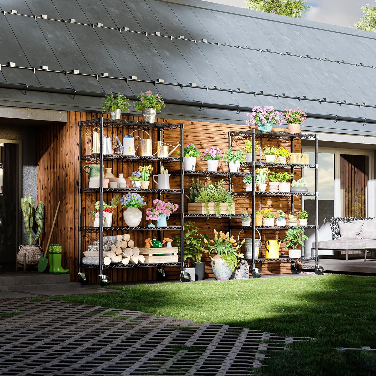 IZEUK 5-Tier Adjustable Heavy Duty Steel Wire Shelving Unit with Wheels, Storage Rack Organizer for Garage, Kitchen, Office, Laundry, Basement (Black, 17.7" D x 47.2" W x 76.7" H, 1750 lbs Capacity)