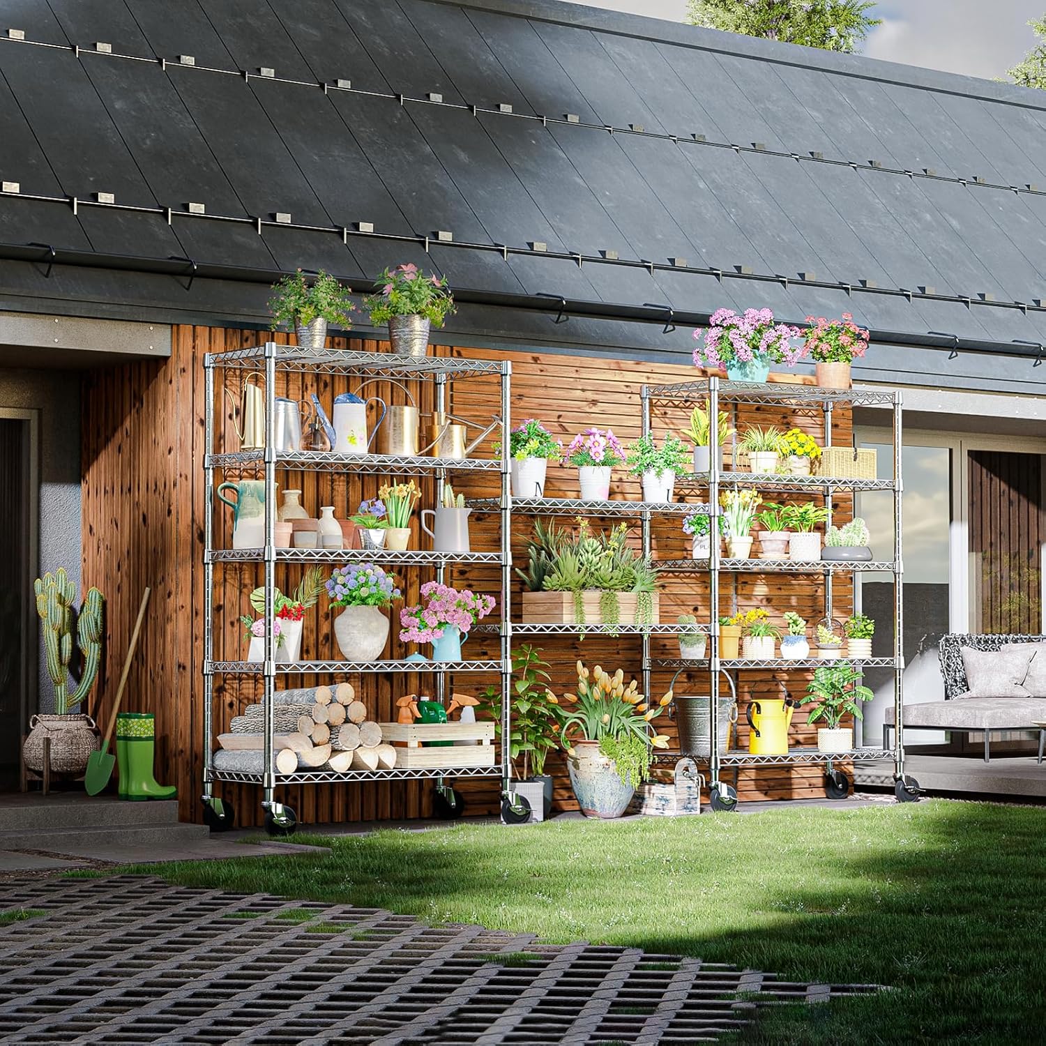 IZEUK 5-Tier Storage Shelving Unit with Wheels, Adjustable Heavy Duty Steel Wire Rack Organizer (Chrome, 17.7" D x 47.2" W x 76.7" H, 1750 lbs Capacity) for Garage, Kitchen, Pantry, Laundry, Basement