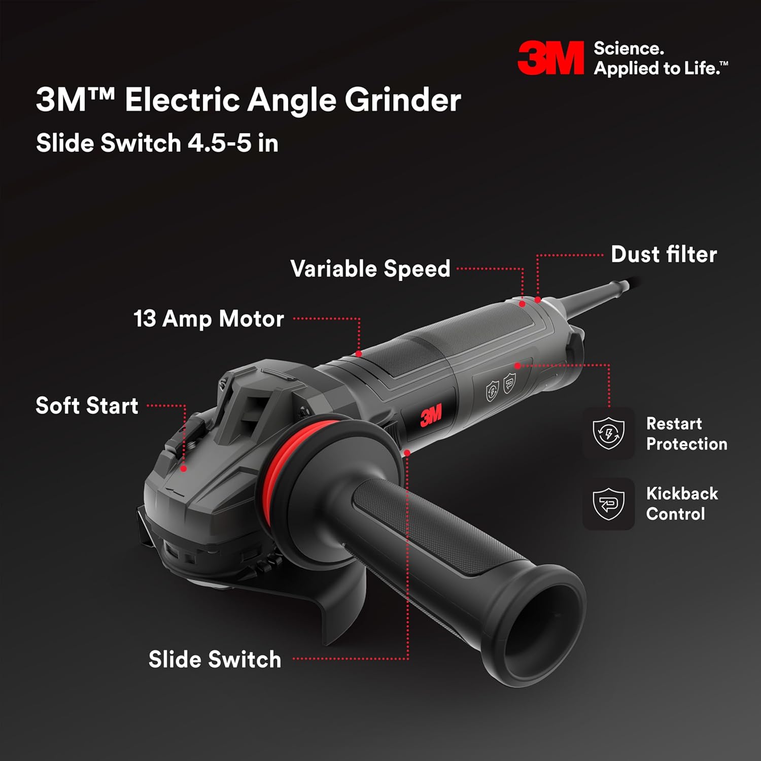 3M Electric Angle Grinder, 11130, VS, 4.5-5 in Slide Switch, 13-Amp, 120V, for Cutting, Grinding, Polishing and Rust Removal,1 EA
