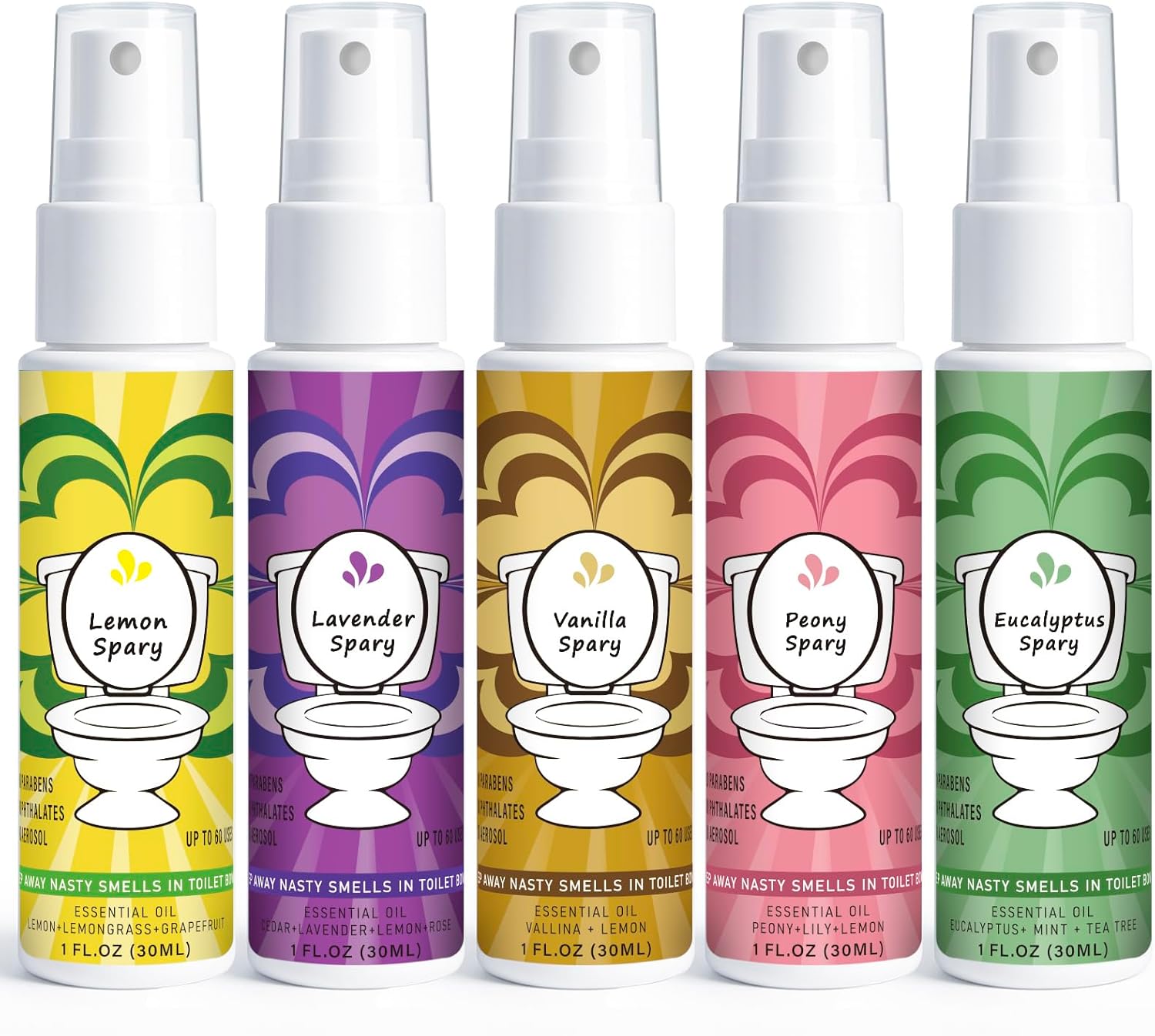 Travel Size Toilet Spray, Air Freshener Spray for Bathroom Deodorizer, Travel Essentials Variety - Lemon, Lavender, Vanilla, Peony, Eucalyptus
