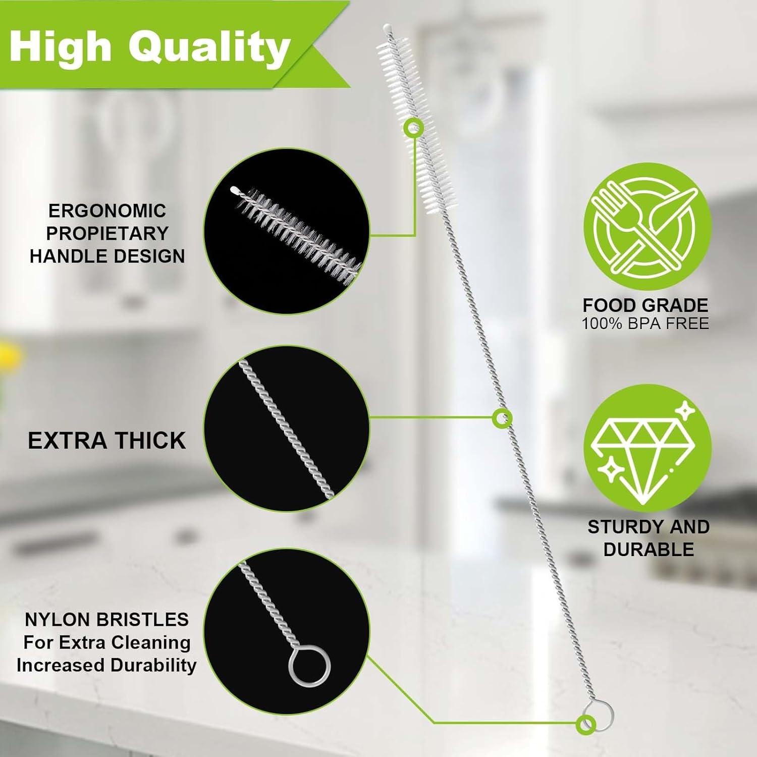 - Durable & Rust-Resistant: Our metal straw cleaner brush is built to last with rust-resistant stainless steel handles. The bendable nylon bristles are tough on grime but gentle enough for delicate straw interiors. This reusable straw cleaning brush is designed for long-term use, making it a cost-effective solution for your cleaning needs. Perfect for daily use or travel, this straw brush cleaner set ensures your straws stay clean and hygienic. Upgrade your cleaning routine with this durable straw cleaning brush.