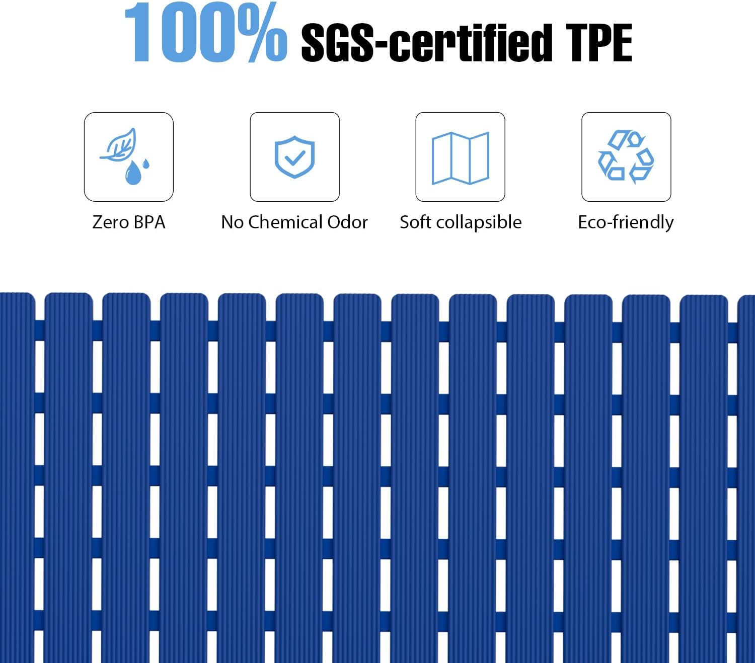 - SGS-Certified TPE: This non-slip bath mat for shower/tub is crafted with 100% SGS-certified TPE (Test Report NO.CANEC25008026405), featuring Zero BPA & Chemical Odor,trusted by 12,000+ Families for Baby Bath Time Safety.