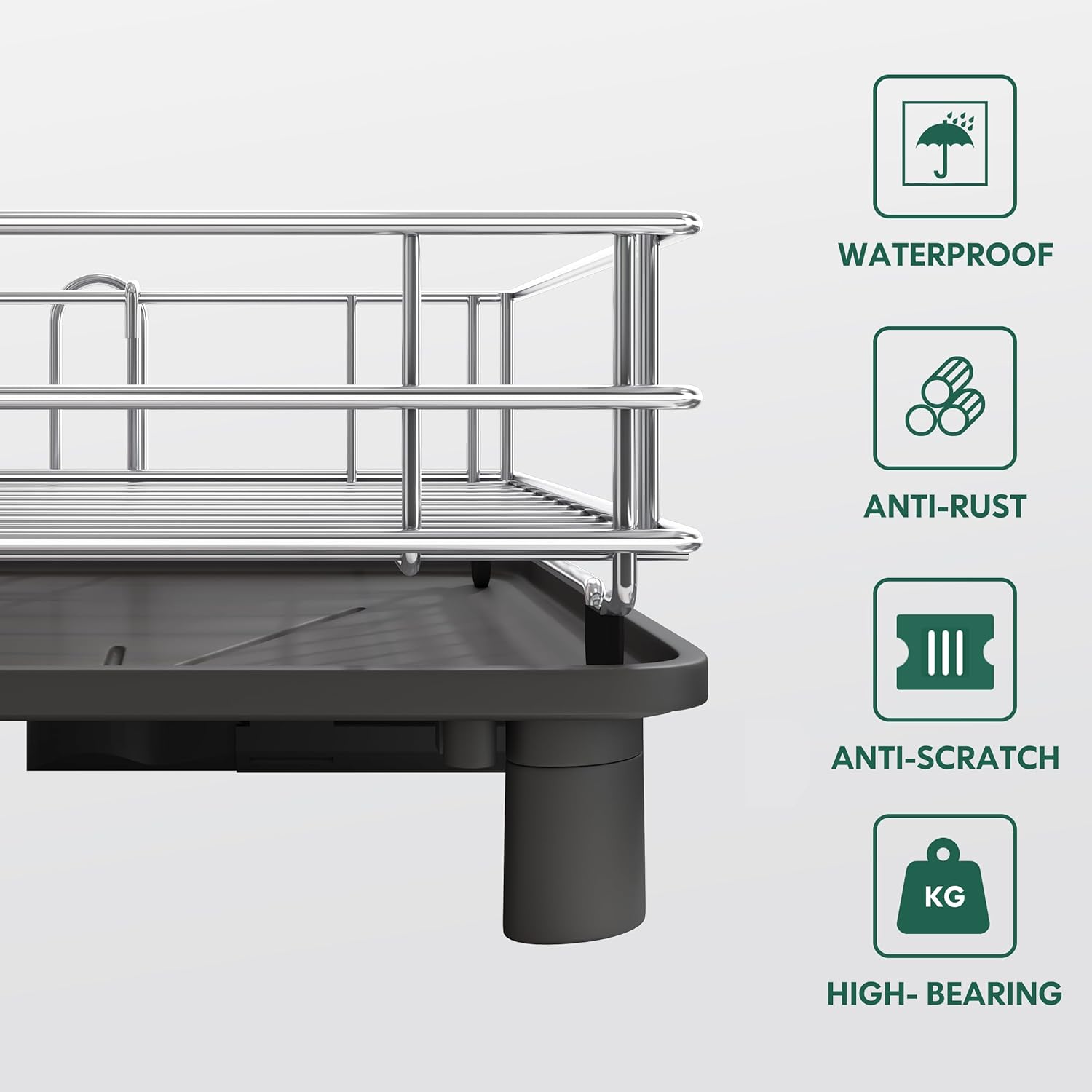 - Heavy Duty Rust Resistant Metal Dish Drying Rack: Constructed from durable metal with an anti-oxidation coating. Withstands the rigors of daily use without bending, peeling, or showing signs of wear over time