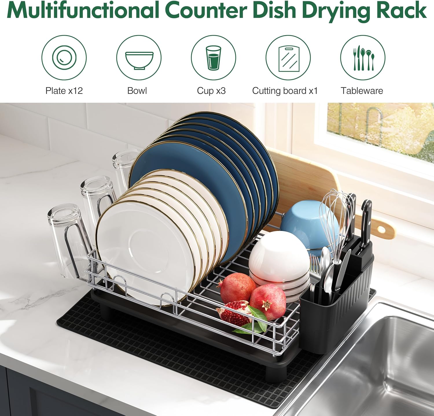 - Compact Dish Rack for Small Kitchen Counters: Measures 15.9"x11.8" to fit narrow spaces easily while providing ample drying capacity while keeping your countertop clutter free