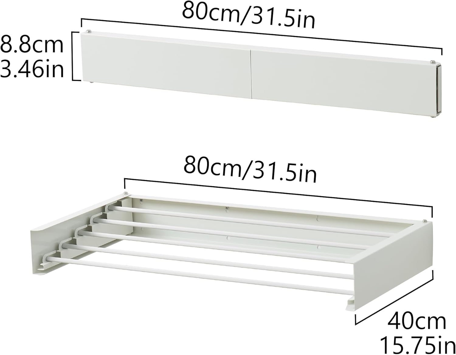 Clothes Drying Rack, Laundry Hanging Rack Collapsible, Wall Mounted Drying Rack for Laundry, Foldable Drying Rack Indoor Outdoor, 31.5" Wide, 5 Aluminum Rods, 60 lb Capacity (White 31.5")