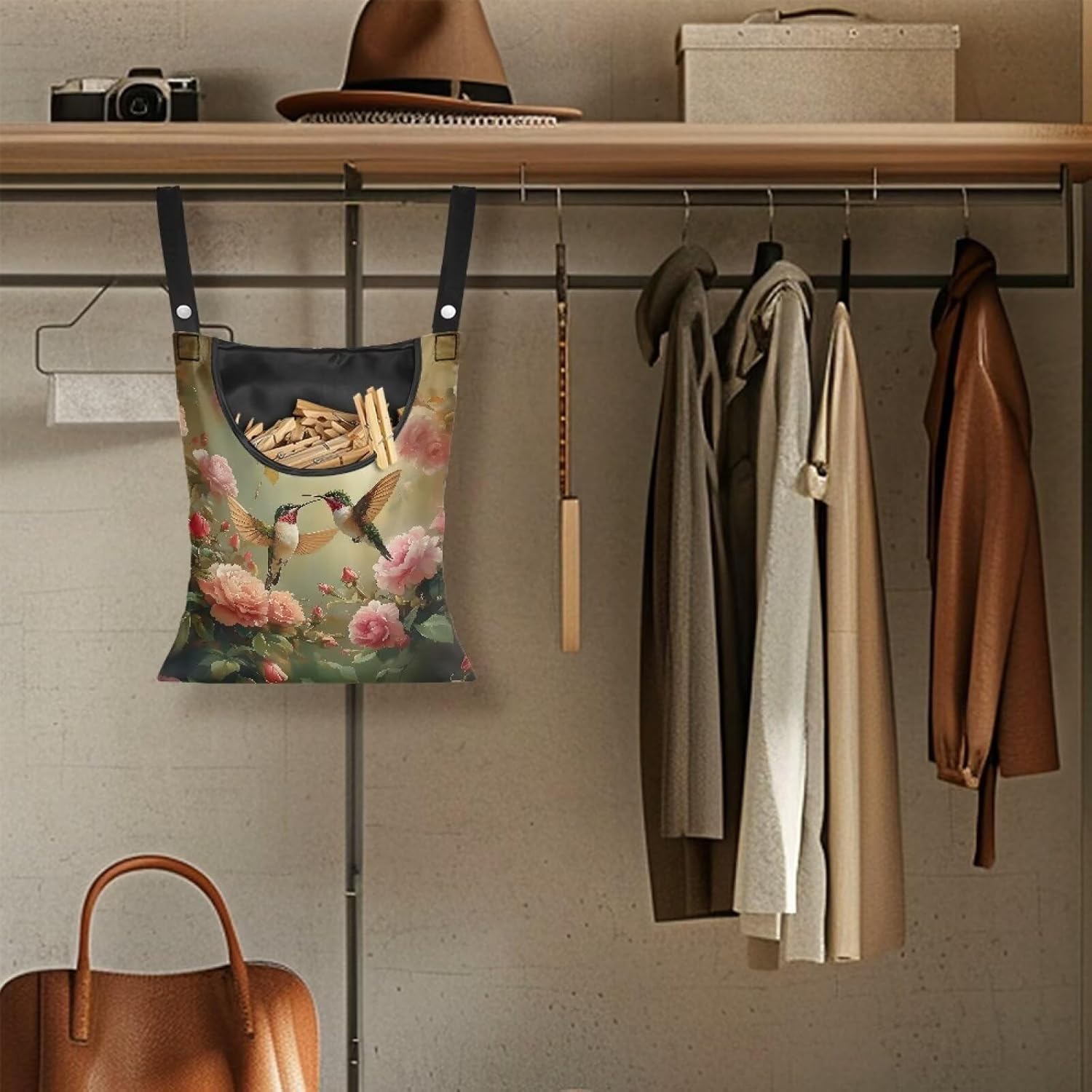 Clothespin Bag, Laundry Hanging Bag Fits Clothes Lines for Hanging Clothes Outside Balcony Bathroom Corridor Yard - Hummingbird Pattern