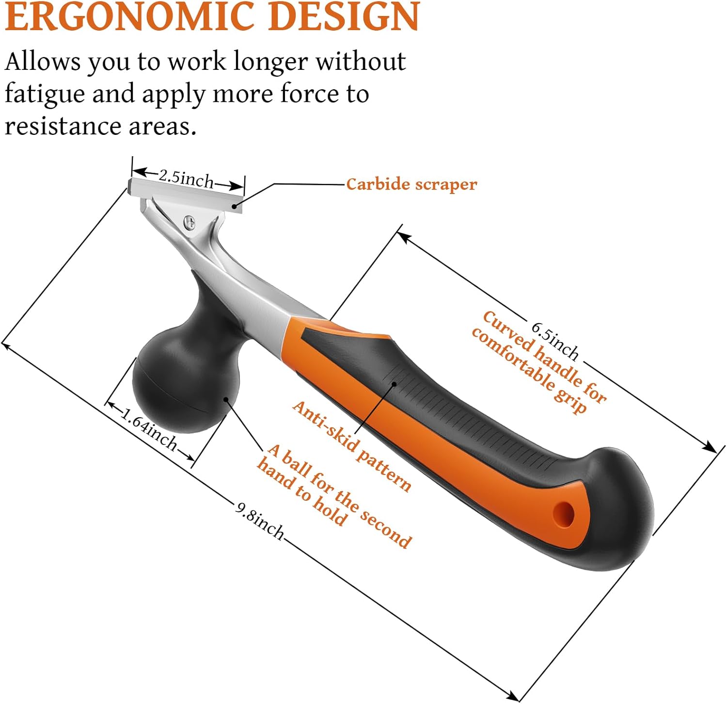 - ERGONOMIC ANTI-FATIGUE HANDLE: Textured grip reduces hand strain during prolonged use. Shock-absorbing design provides maximum control when removing epoxy, carpet glue, or paint from floors,table,stair,wall.