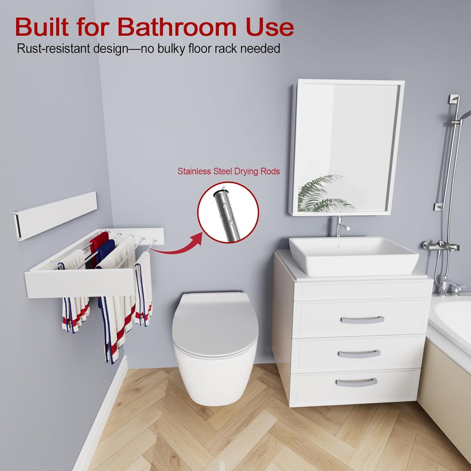 - Strong & Sturdy: Drying rods are made of thick, premium stainless steel that resists rust and bending. The solid frame provides long-lasting strength and stable wall support—a perfect foldable wall drying rack. Your laundry room essentials
