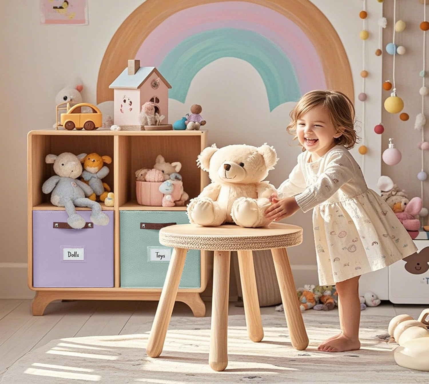 - 2-Sided Designs: With its dual handle features, our kids storage cubes can be used in both sides with a label holder on the front, or at the back.