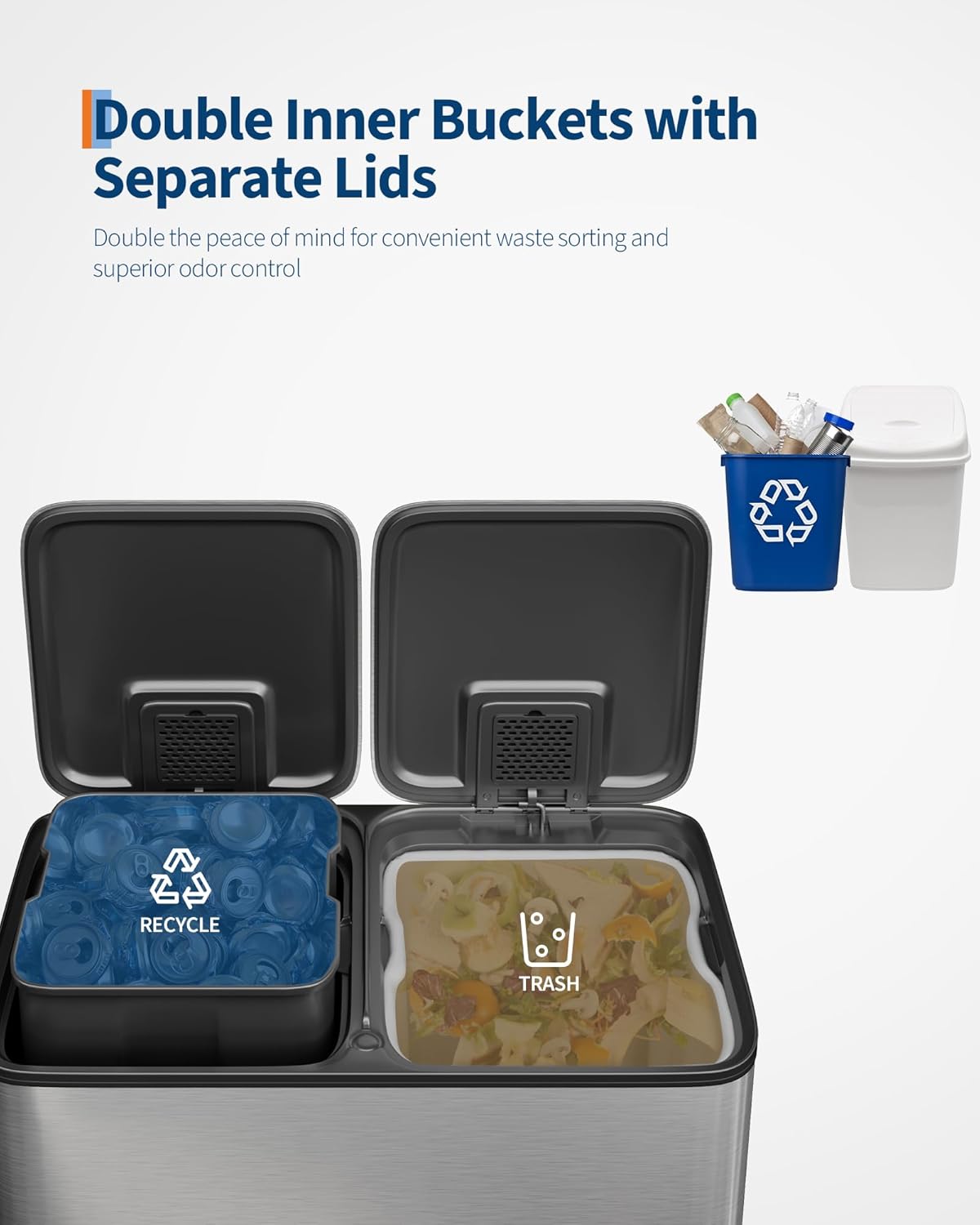 - Special Feature : Durable, Dual Compartment, Rustproof, Odor Seal, Quiet Close, Easy to Clean, Anti-slip, Removable Inner Buckets, Liner Rim, Fingerprint-resistant, Side Handles, Liner Ring Durable, Dual Compartment, Rustproof, Odor Seal, Quiet Close, Easy to Clean, Anti-slip, Removable Inner Buckets, Liner Rim, Fingerprint-resistant, Side Handles, Liner Ring
