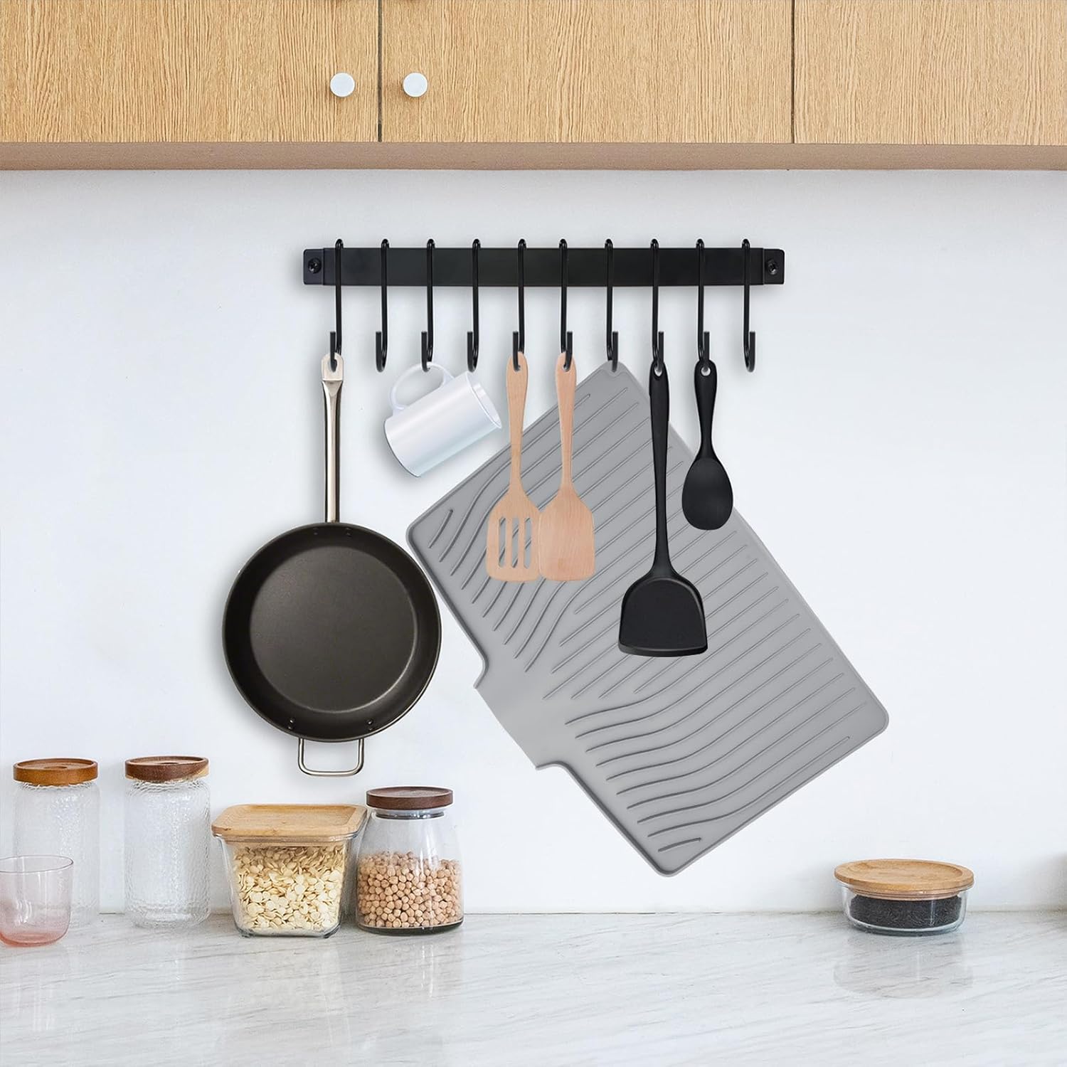 Silicone Dish Drying Mat for Kitchen Counter, Dish Drainer Mat, Non-Slip Drying Pad with Built-in Drain, Kitchen Drying Matt For Counter(18.9" x 11.8", Gray)