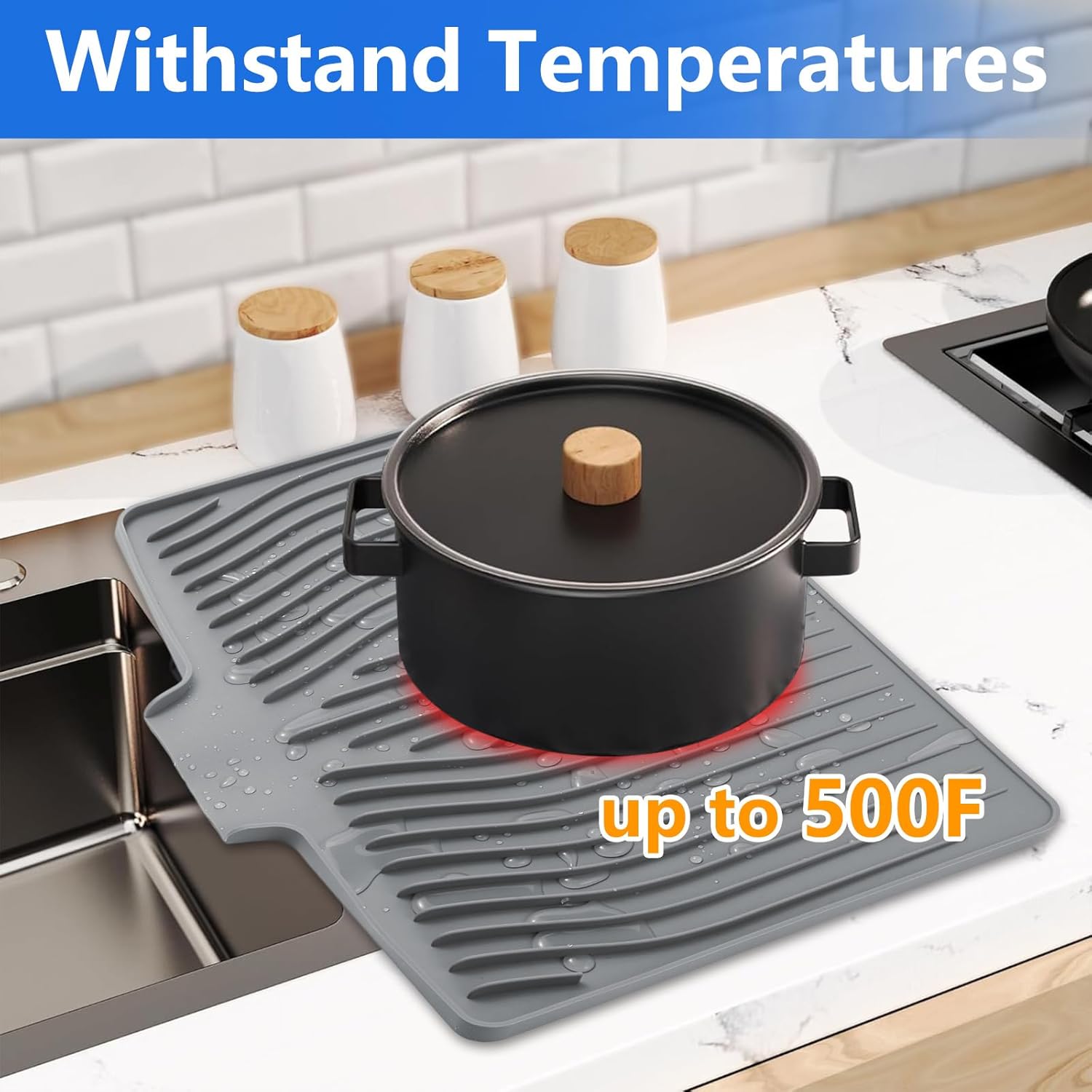 - Fast Drying: Silicone dish drying mats are designed with raised stripes to increase air circulation, which speeds up the drying process and allows your utensils to dry faster. The specially designed edges allow water to drain directly into the sink. This keeps your countertops dry