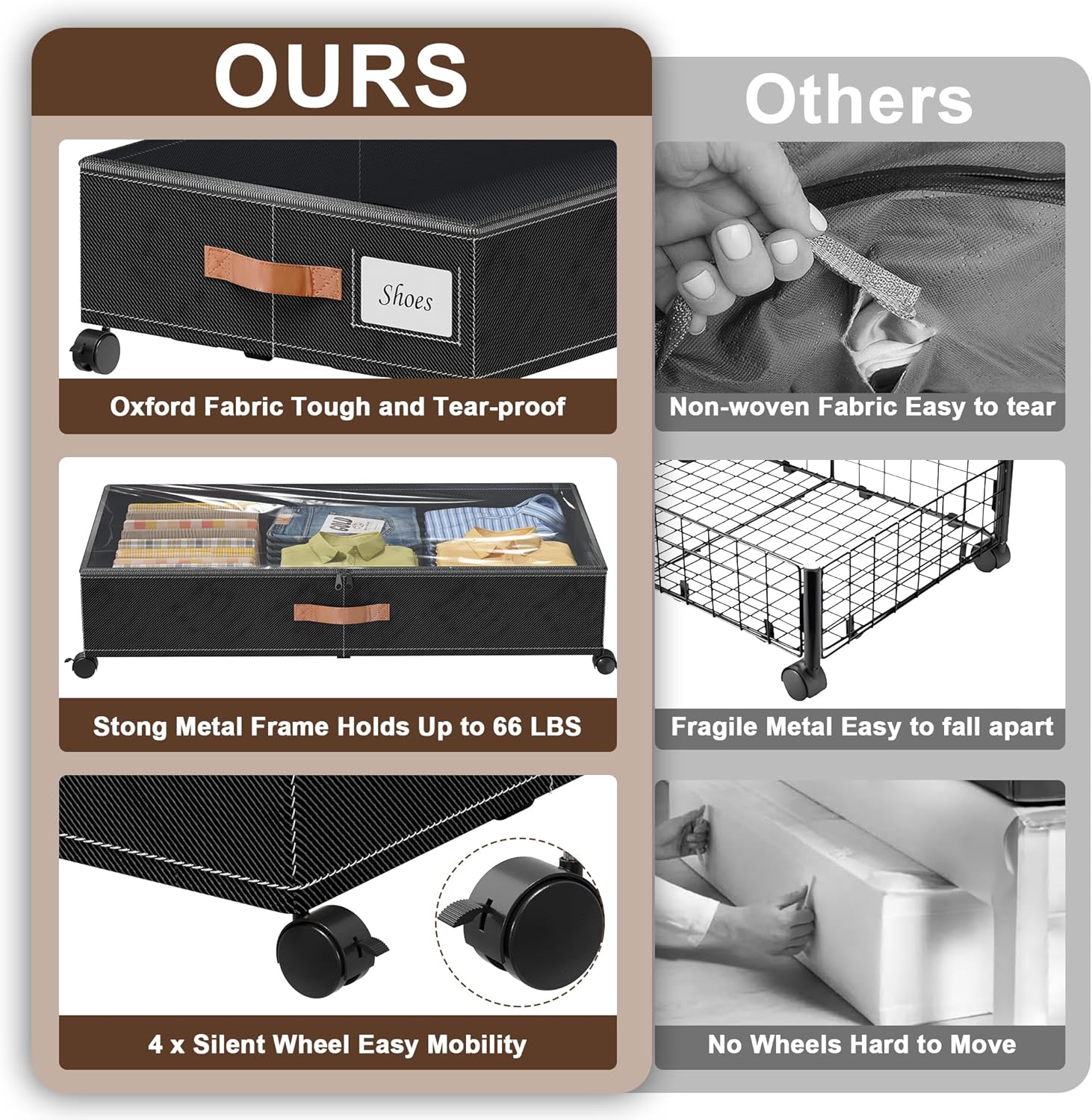 - 【Service & Easy to Install】DGFCK strong after-sales service guarantee, 6 months warranty, any product questions please contact us. This under-bed storage box cocoa can be installed in a quick 15 minutes, detailed instructions and easy installation. Save your time and effort. It can also be placed under cribs, sofas, sofas and furniture. A bedroom necessity you must have!