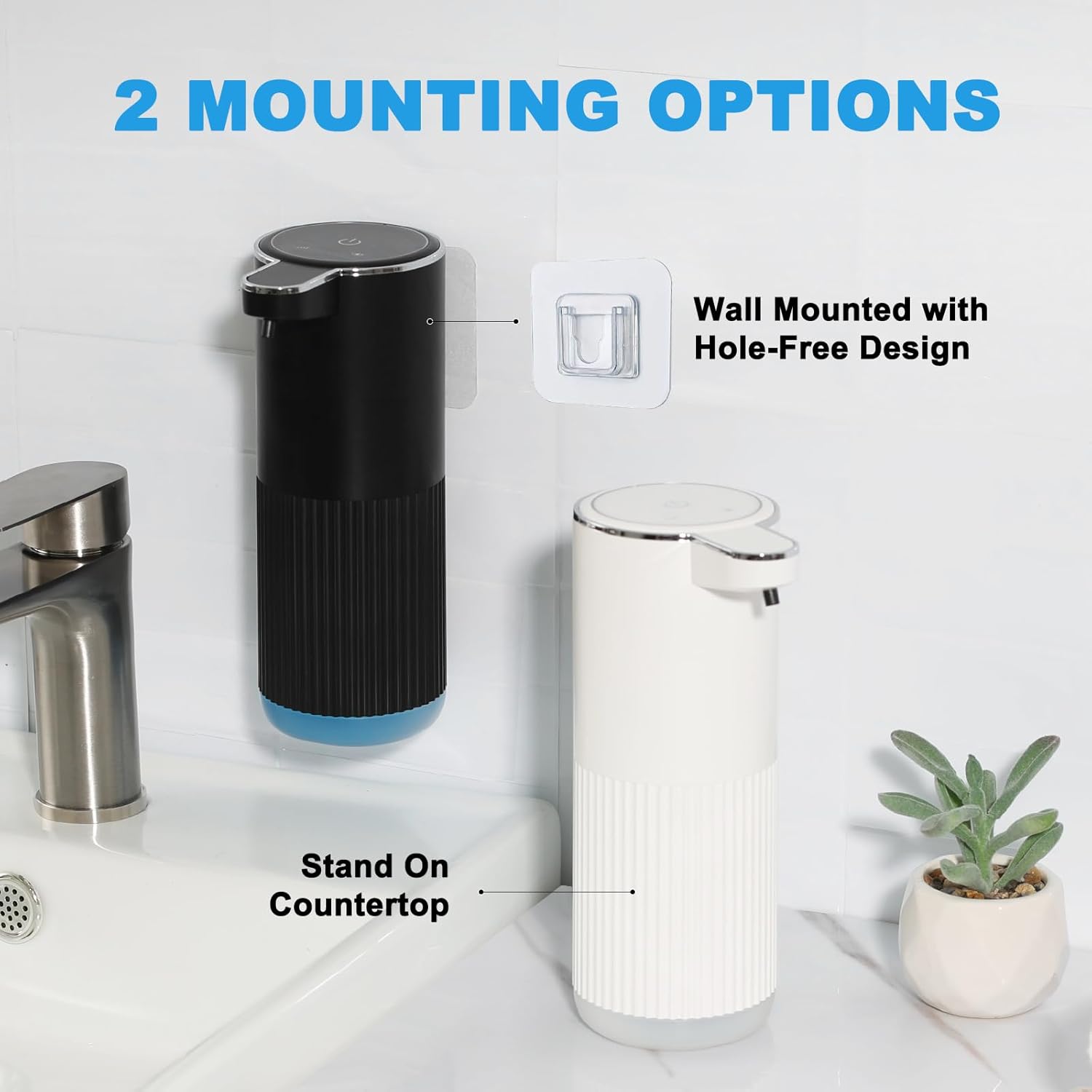 - 【MODERN MATTE BLACK AND WHITE DESIGN】Featuring a compact vertical line design and muted matte finish, this electric soap dispenser touchless blends seamlessly into modern decor. Whether you prefer placing it on the countertop or mounting it on the wall, it provides versatile installation choices. This automatic dish soap dispenser for kitchen fits in spaces in cramped kitchens or bathrooms. It is good for homes, offices, or commercial settings seeking style and practicality.