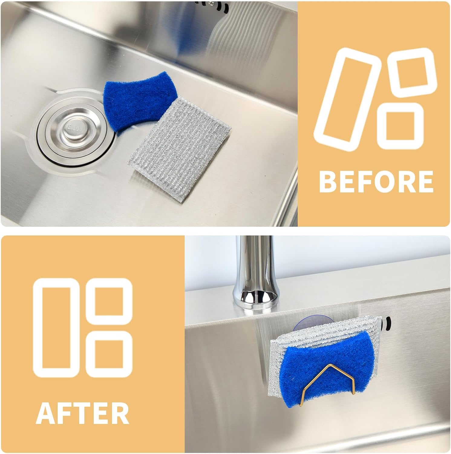 Snailhouse Sponge Holder for Kitchen Sink, 2 Pack Suction Cup Stainless Steel Rustproof Dish Sponge Rack Organizer Holder Basket Accessories, Gold