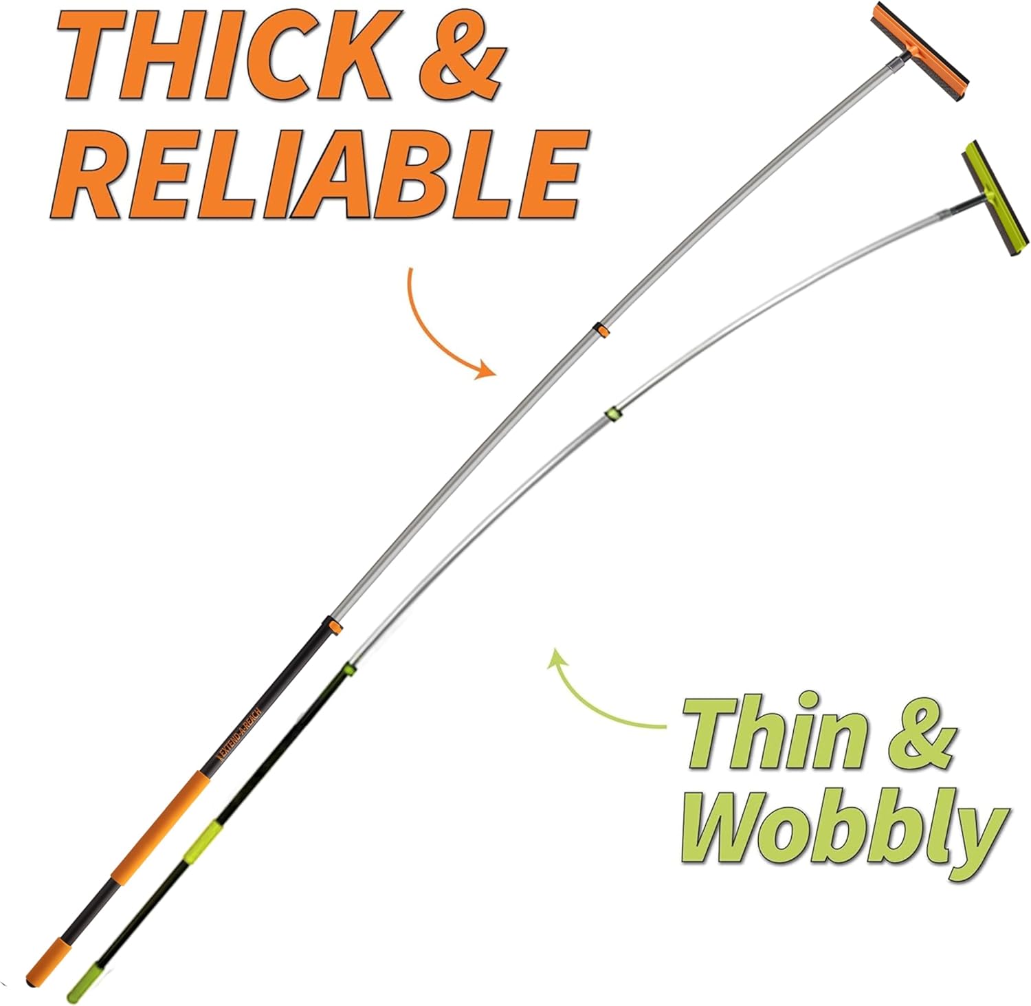 - THE ONE EXTENSION POLE THAT WON’T BREAK- Made of meticulously crafted, extra-thick aluminum, this extension pole is stiffer, tougher, and stronger. While other extendable window squeegees can get wobbly and fragile when fully extended, the EXTEND-A-REACH telescopic pole will always perform solidly. The professional window squeegee pole also features quick-release thumb lever clasps for easy extension control and non-slip hand grips to ensure maximal stability and reliable grip.