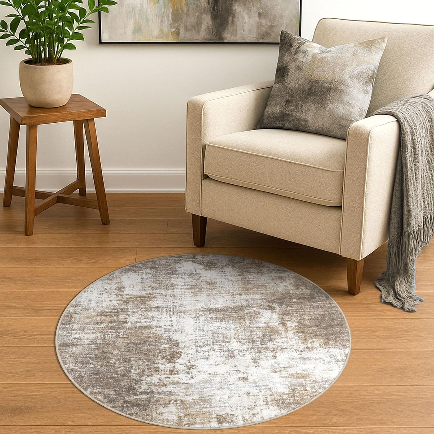 - Ultra Soft Touch: This washable round rug is made from plush synthetic fibers, offers a dense, cloud-like surface that cushions feet and shields toes from cold floors. Durable, non-shedding, fade-resistant, and odorless, it's ideal for high-traffic areas