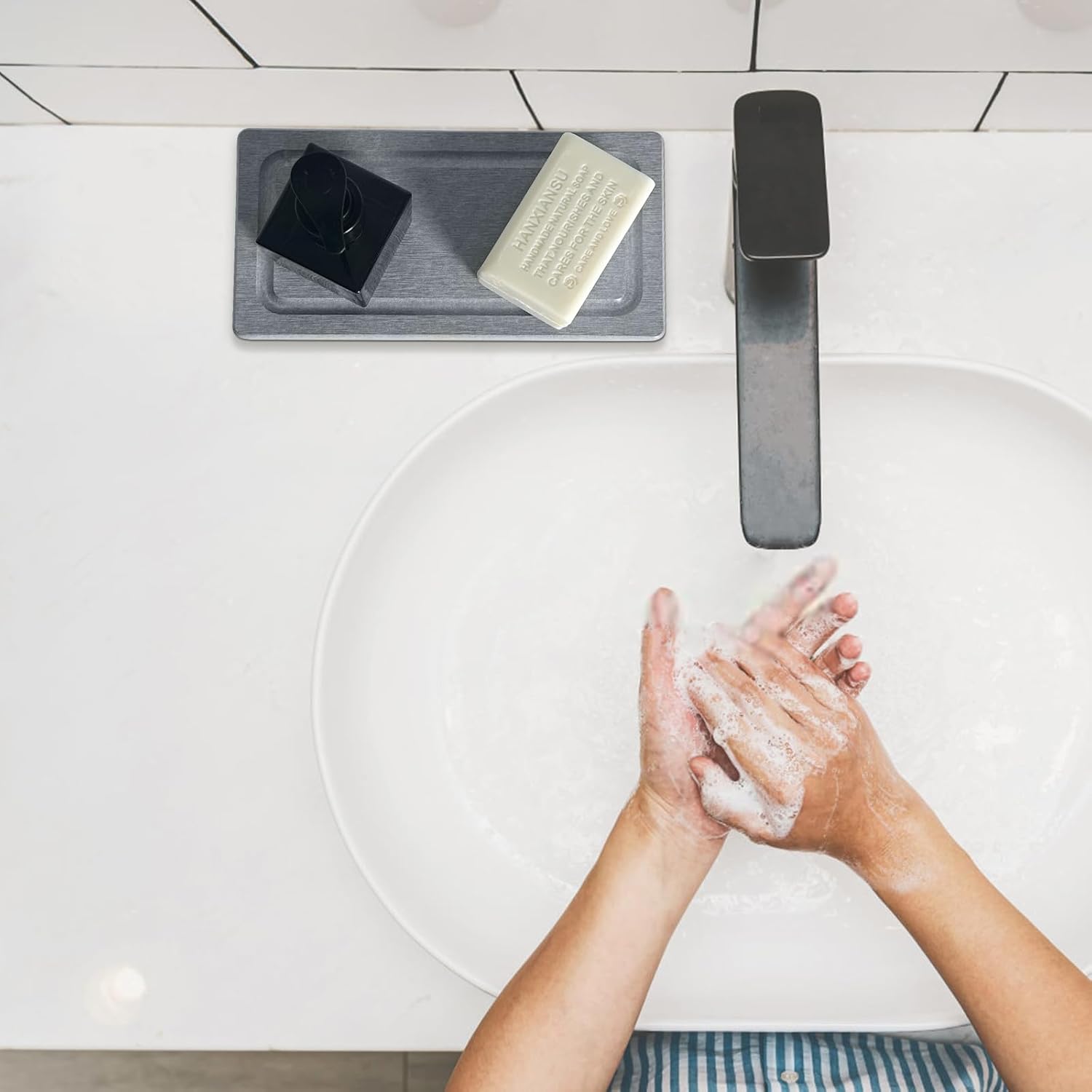 - 【Multifunctional】This versatile diatomite tray works perfectly for bathroom sinks and kitchen counters. Ideal as a drying base for soap, cups, hand soap bottles and cosmetics. Keeps surfaces dry and tidy for a cleaner, more organized space.