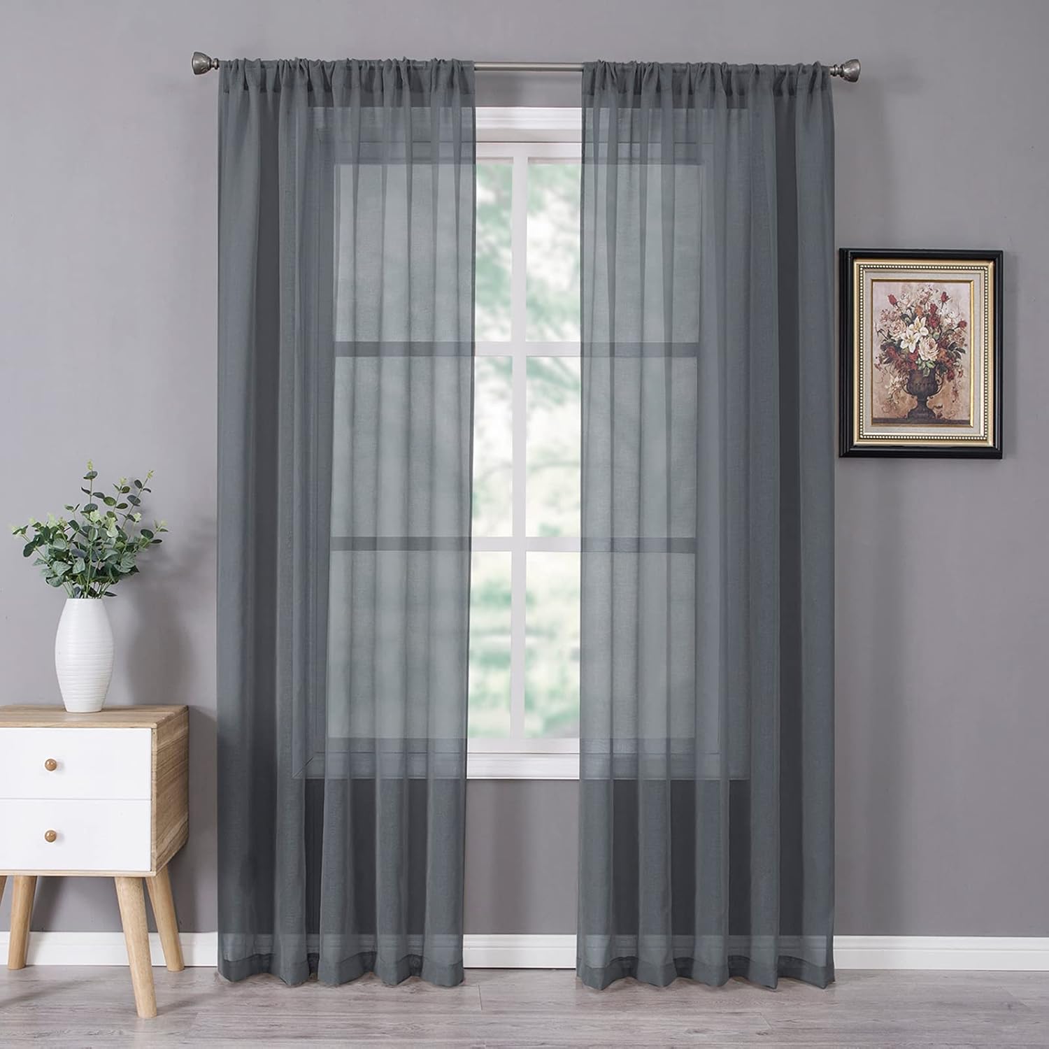 - Light Filtering: The linen look dark grey sheer curtains can allow the right amount of natural light through to bring your room a hazy and softer vision, keep you away from someone’s glance from outside and provide you some privacy.