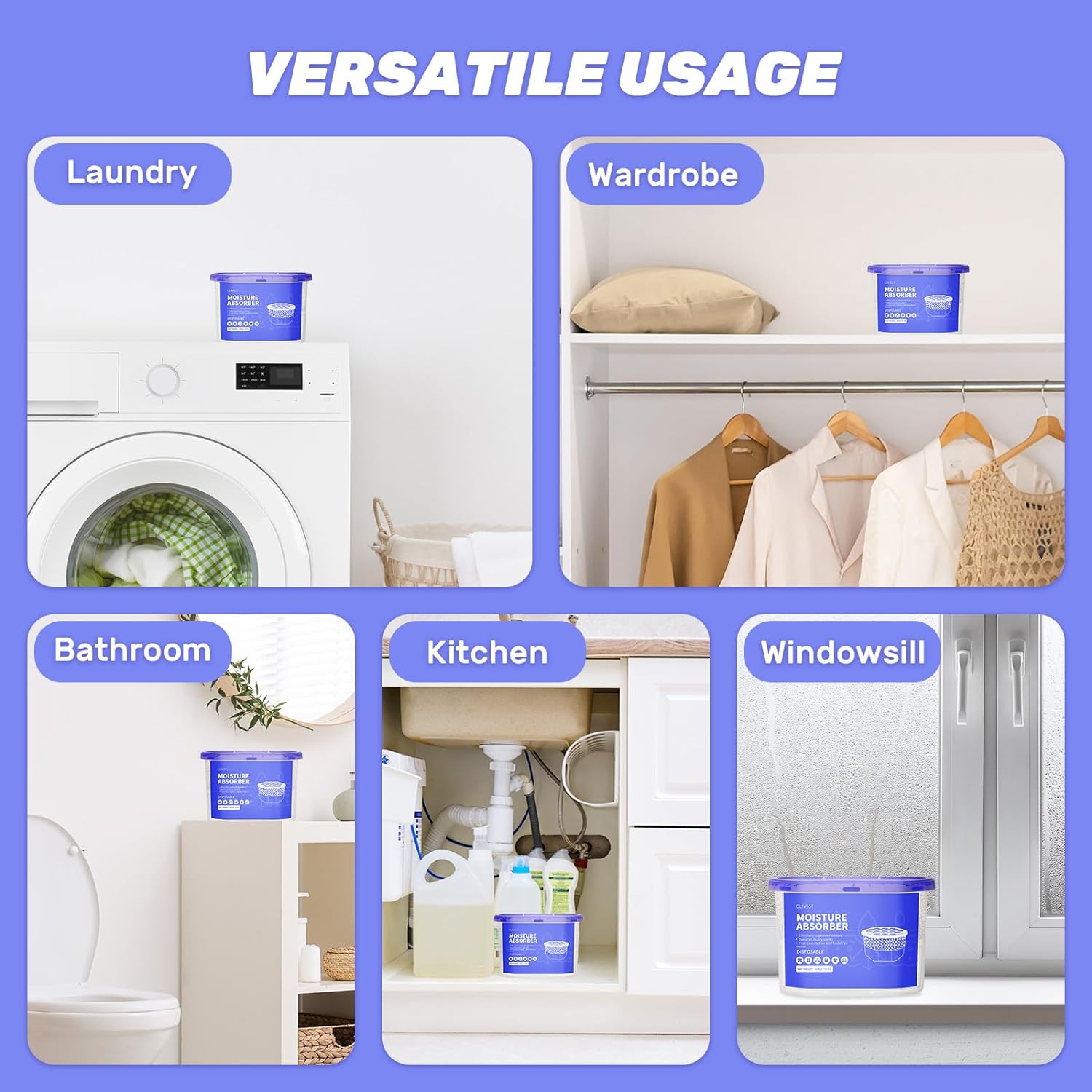- EASY TO USE & STORAGE: No assembly is required. Each closet moisture absorber is stored in a separate box for easy use and long-term storage. These can be placed anywhere for physical dehumidification. They take up just a little space in your room and help to get rid of odor in your damp home.