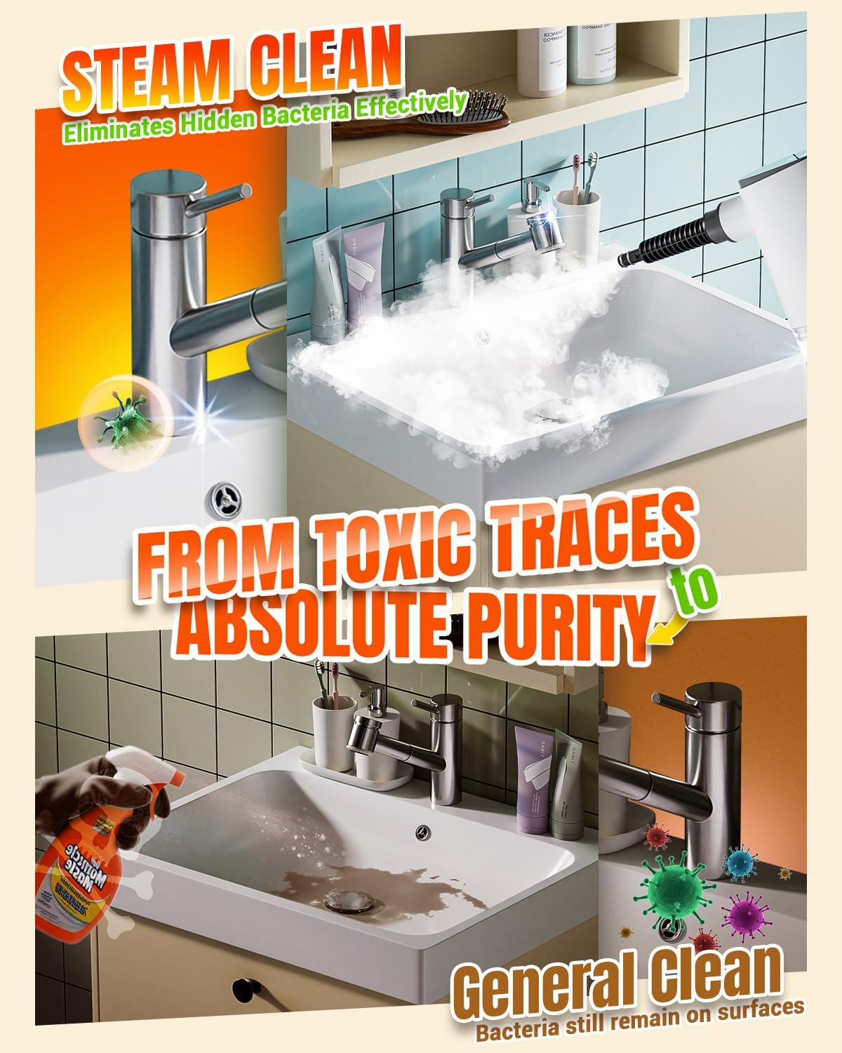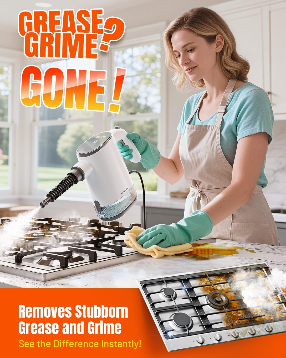 - Powerful & Continuous Steam: This handheld steamer for cleaning generates strong, pressurized steam to break down grease, grime, and sticky messes on contact without dripping. The steam cleaner for home tackles multi-surface messes like tile, kitchen counters, grout lines, and more with high-efficiency cleaning—with zero chemicals needed