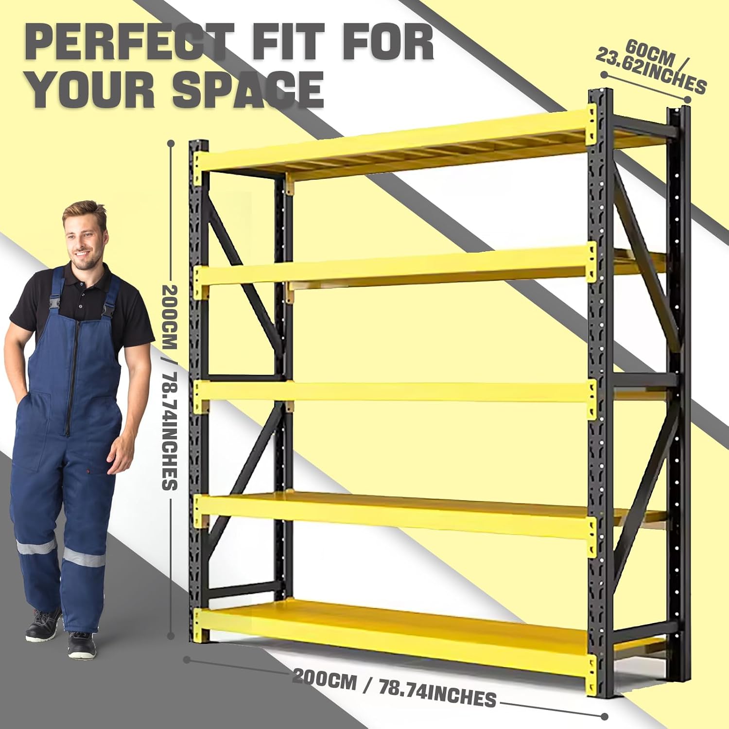 5000lbs Load Capacity,Heavy Duty 4-Tier Steel Shelving Unit, Adjustable Industrial Storage Rack for Garage Warehouse (Yellow and Black, W78.74*D23.62*H78.74)