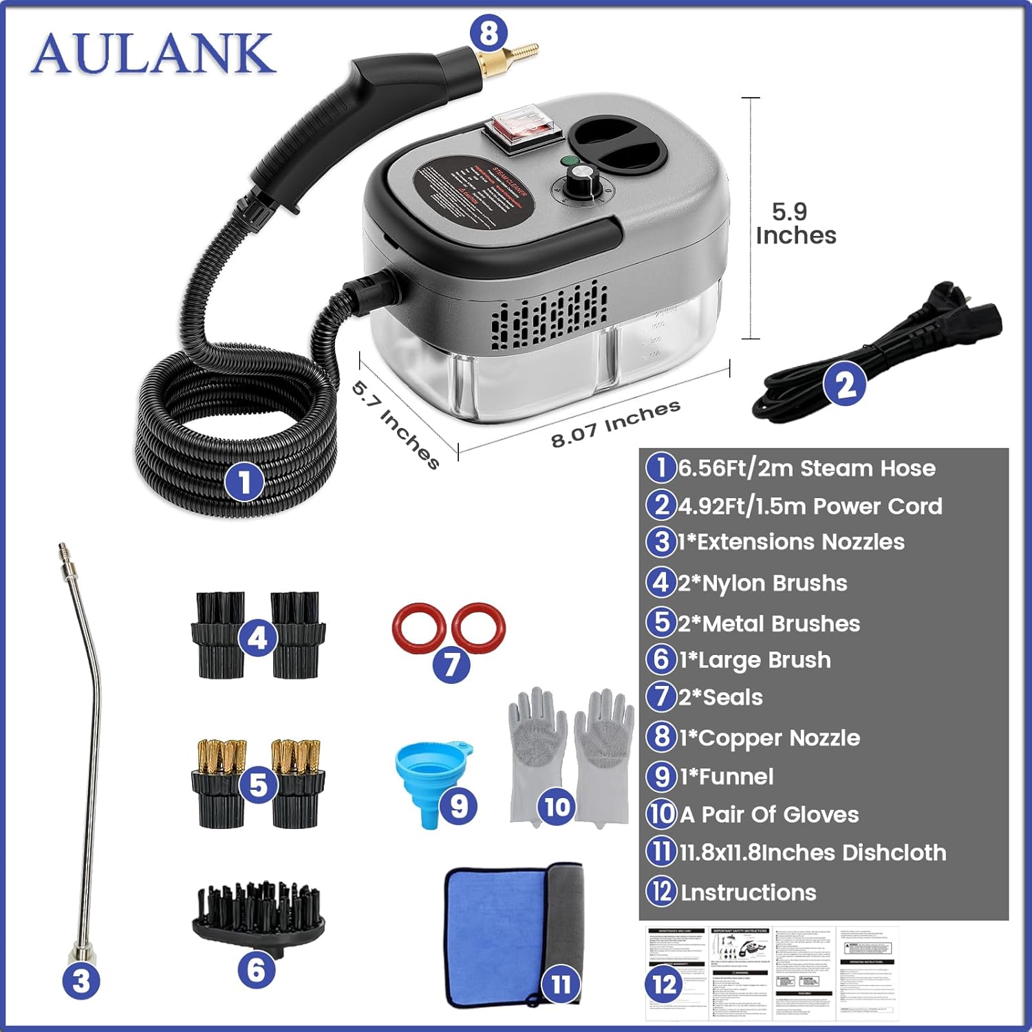 - ăMulti-function Steam Cleaner & Multiple Accessories SetăOur AULANK powerful home steam cleaner includes a wide range of brushes accessories, and this all-in-one steamer for cleaning.It can effectively clean stubborn greasy dirt and stains, and is suitable for cleaning walls, cooktops, smoke lamps, microwave ovens, washing machines, refrigerators, etc., You can choose the accessories which you needed and to clean hard-to-reach areas.Make your home cleaner and fresher than ever.