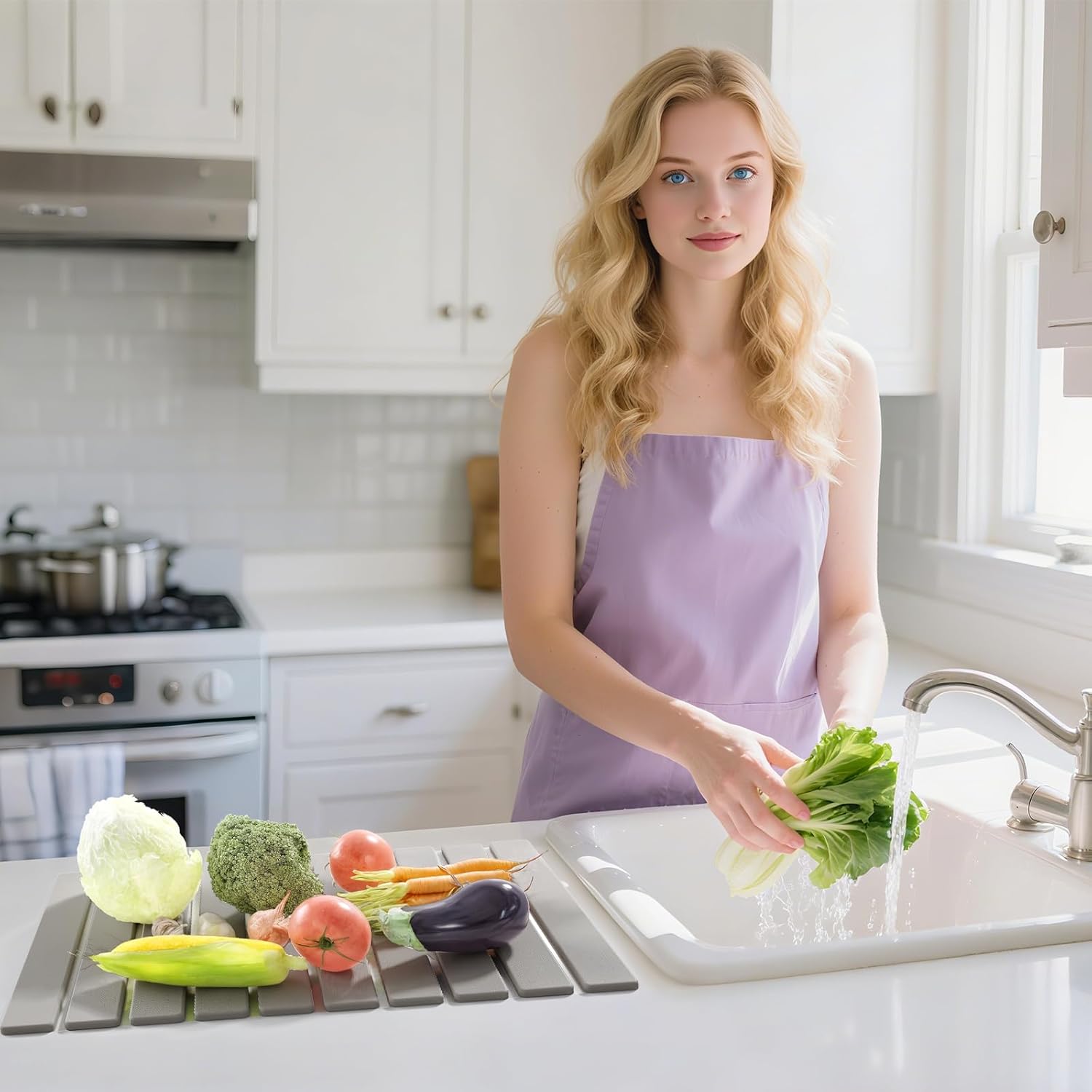 - Roll Up Self-Drying Dish Mat:This stone kitchen drying mat folds effortlessly for compact storage in drawers or cabinets. The fast-drying surface keeps countertops neat, ideal for small kitchens, RVs, or dorms. Its sleek stone-textured design saves space with a modern minimalist look.
