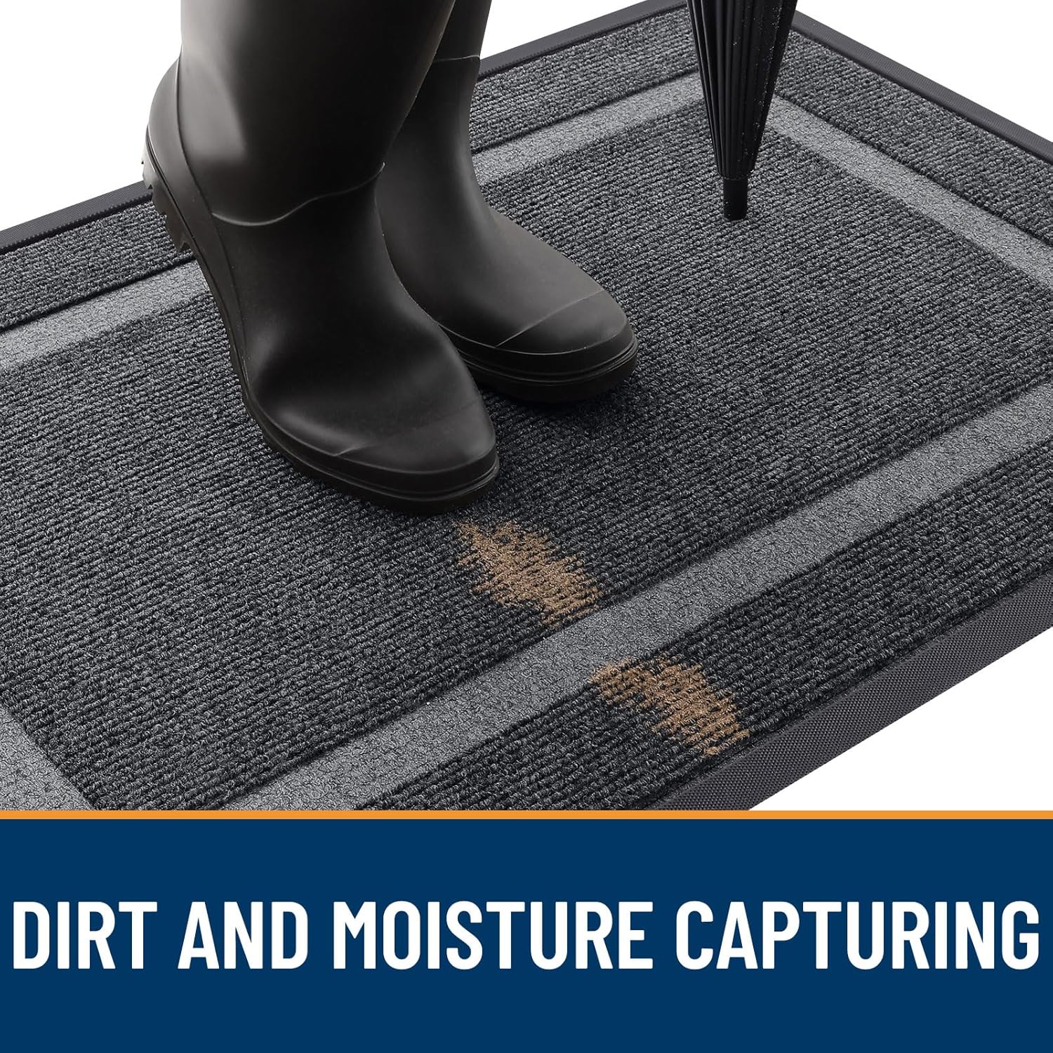- [CAPTURES DIRT AND MOISTURE] The sturdy woven topside and deep grooves effectively capture dirt, mud, and moisture; the OLANLY door mat is designed to prevent unwanted debris from being tracked into your home.
