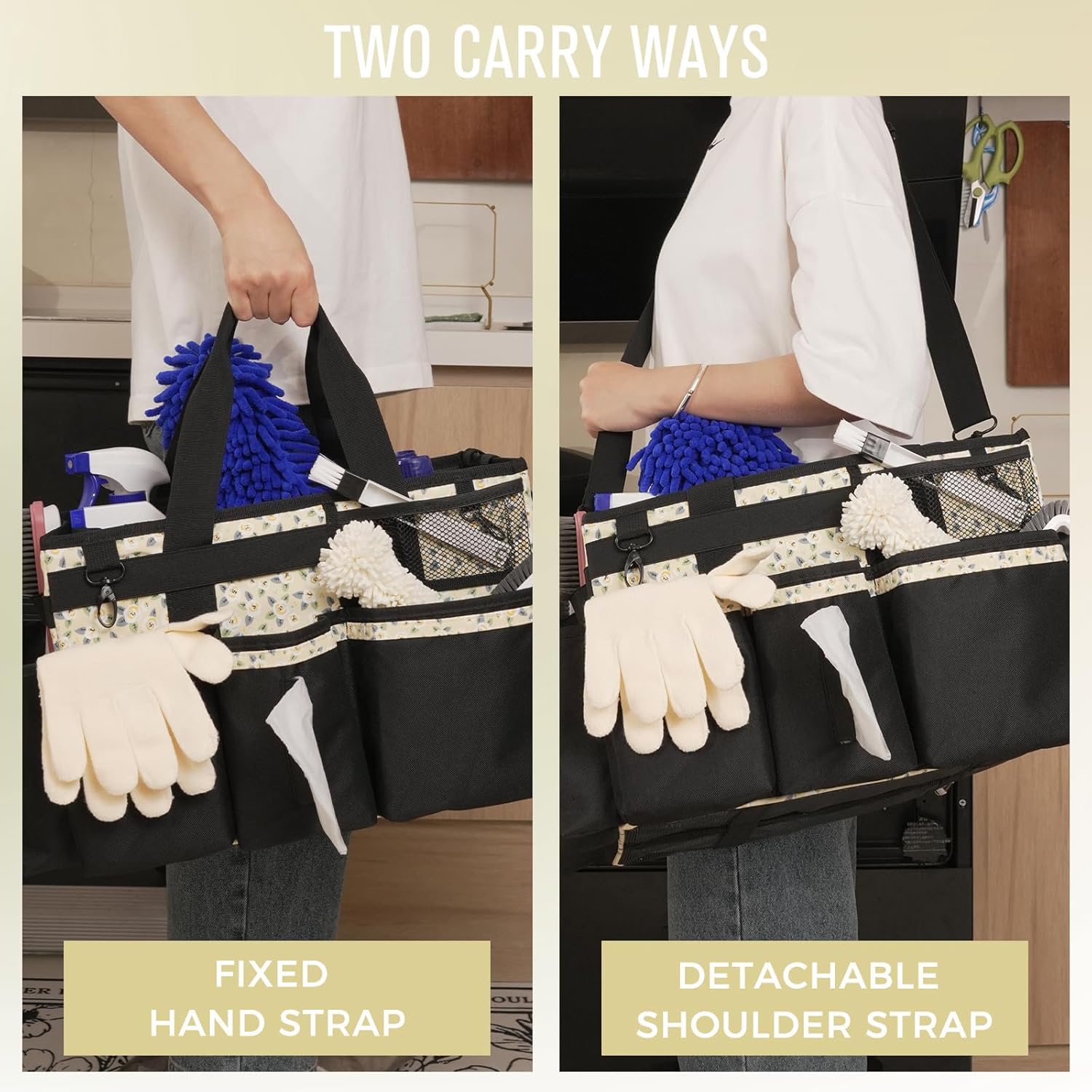 - Large Wearable Cleaning Caddy: Our cleaning organizer bag is perfect for storing cleaning supplies & tools, measures 15.7 x 9.6 x 9.1 inches. Cleaning caddy bag with handle and adjustable shoulder straps for easily cleaning in the home, kitchen, sink, car, and outside. Keep your cleaning items well-organized and neatly. Great for maids and housekeepers