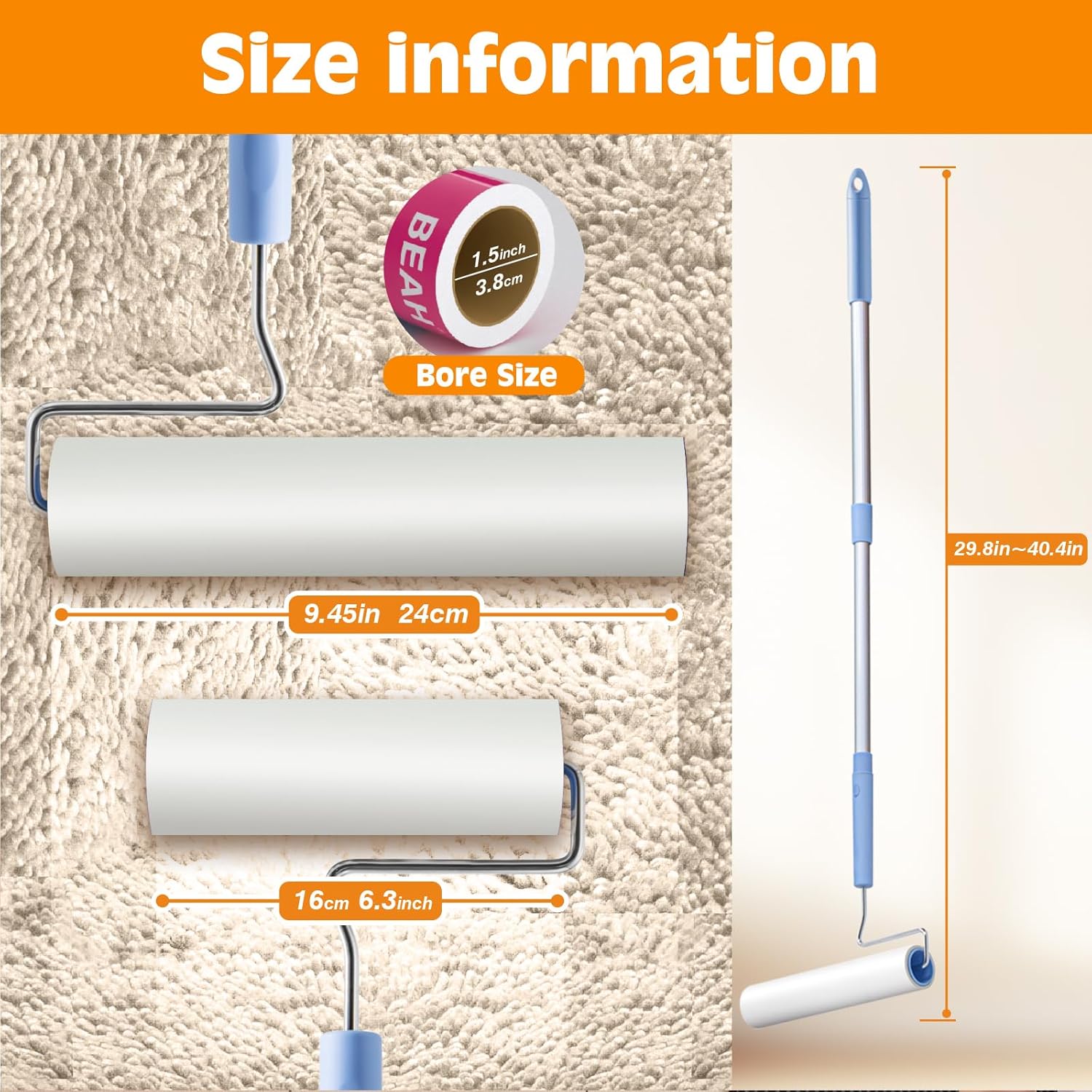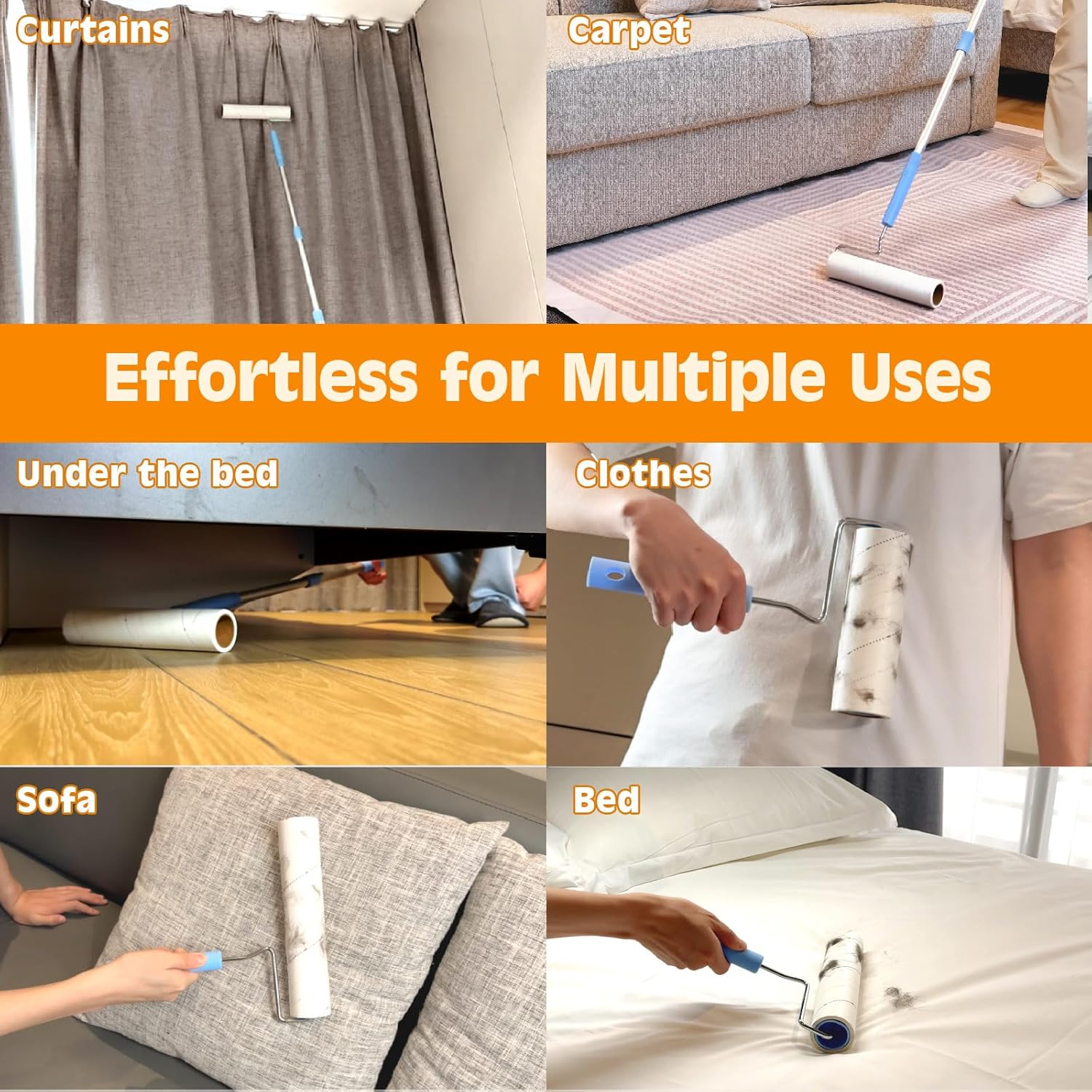 - Detachable Extendable Aluminum Alloy Handle & Dual Rollers:Durable aluminum alloy handle extends up to 40.4" to reach high spots like curtains and ceiling corners, and detaches when not needed for portable cleaning. Two roller sizes ensure versatile useโperfect for clothing, furniture, carpets, and even car seats.