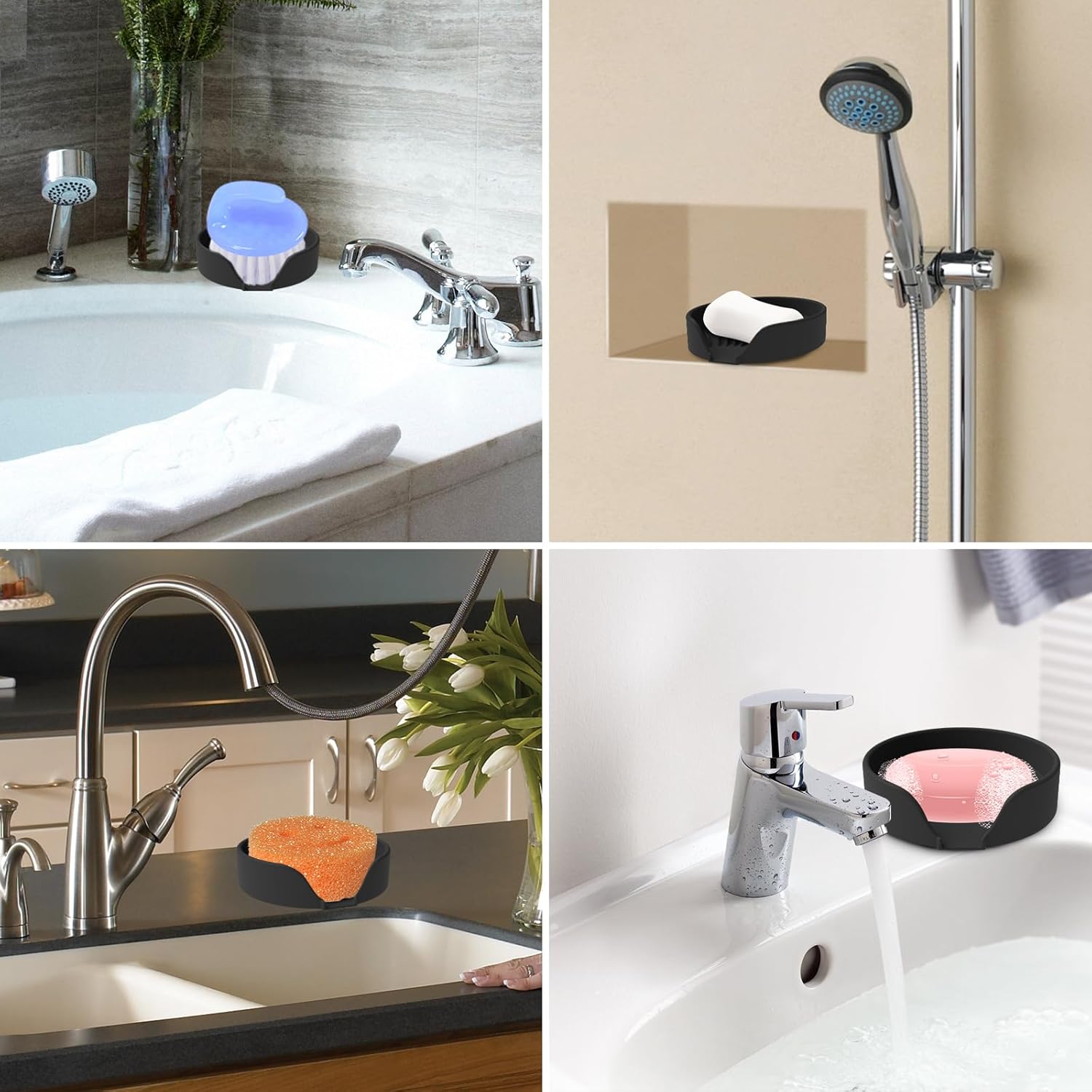 - Self Draining Soap Dish: The silicone shower soap dish is designed with an raised surface and a drain spout. It can automatically drain water into the sink, prevents soap from getting mushy and water from pooling on the countertop, keeping both clean