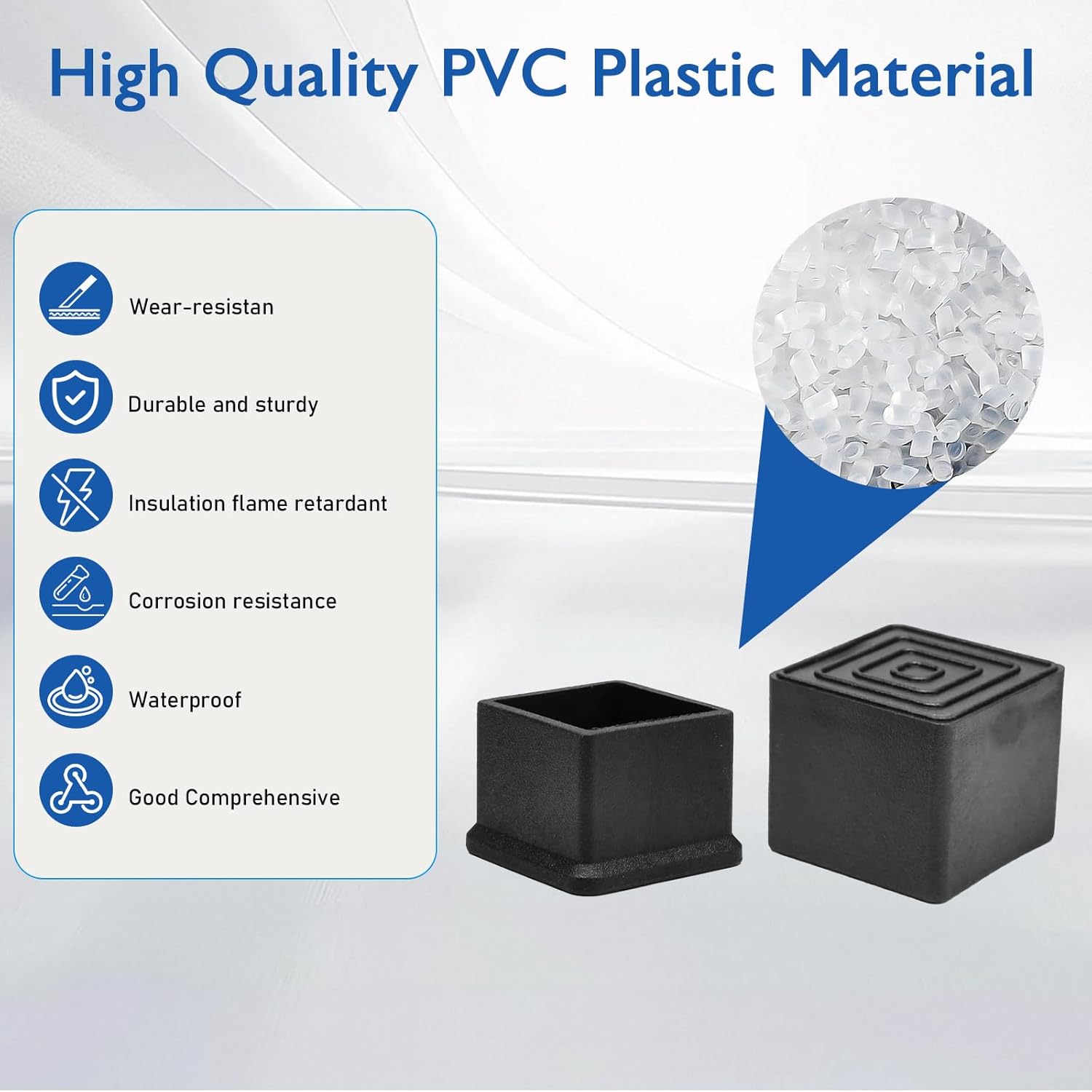 - Wide Applications: Suitable for various size furniture feet, our chair feet caps can be used on kitchen chairs, tables, dining room chairs, sofas, couches, bar stools, beds, dressers, patio chairs, metal bistro chairs, desk chairs, any square opening; They provide a neat and safe finish to tube ends