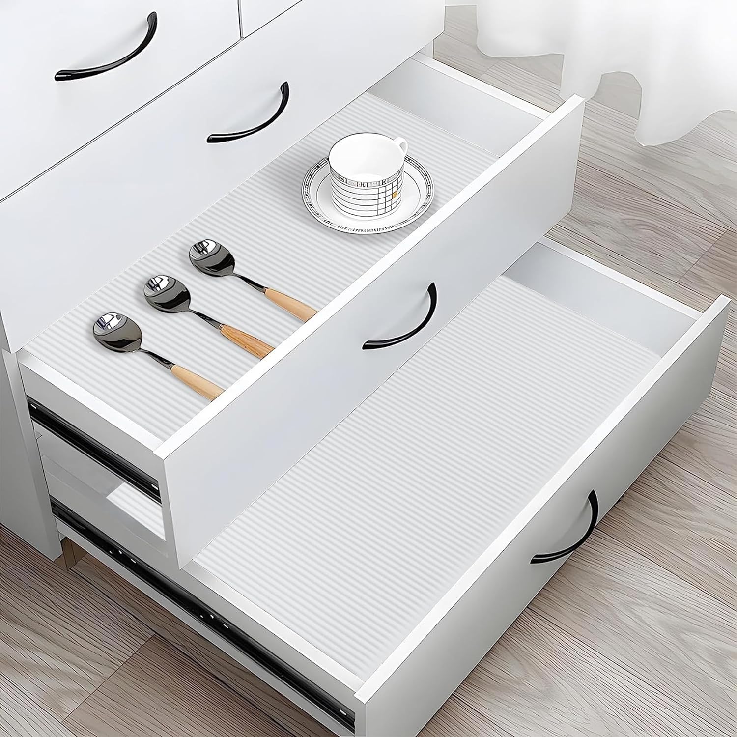 - 【DIY size and cuttable】: The refrigerator shelf liners for glass shelves is suitable for standard fridge, but the mat can be cut into the right size and shape with scissors as needed. To fit anywhere in your home, such as shelves, drawers, cabinets, placemats, food storage boxes, etc.
