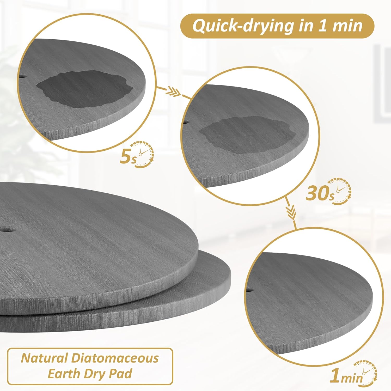- Kitchen Instant-Drying Utensil Holder: This silverware caddy comes with instant dry diatomite stone pad at bottom, which is made from natural diatomaceous earth ,well performace for its exceptional water adsorption capabilities and reliability. They can automatically absorbs water and dries in a few minutes.This diatomite stone caddy can be used as a utensil drying rack which keeps your kitchen countertop more dry and tidy ,no more wiping countertops or scrubbing moldy residue.