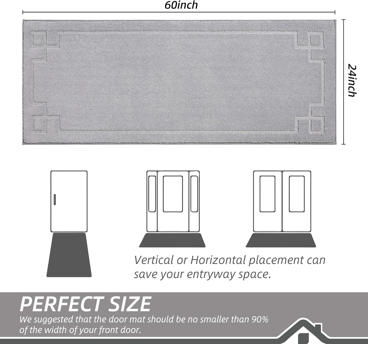 BEQHAUSE Door Mat 24" x 60", Non-Slip Door Mats Indoor Entryway Rugs Washable Low-Profile Absorbent and Stain Resist Floor Mats, Dog Door Mat for Front Back Door, Muddy Wet Shoes & Paws, Light Grey