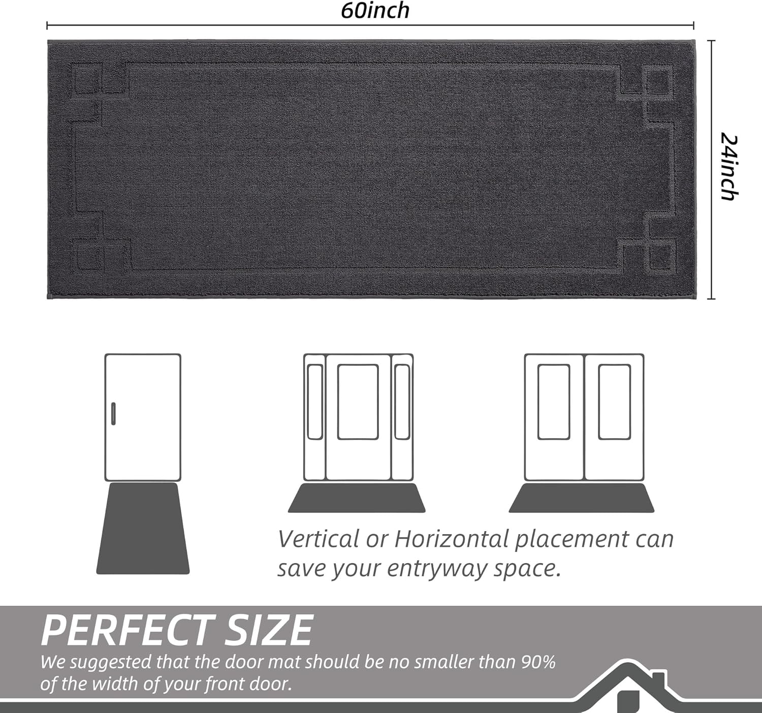 BEQHAUSE Door Mat 24" x 60", Non-Slip Door Mats Indoor Entryway Rugs Washable Low-Profile Absorbent and Stain Resist Floor Mats, Dog Door Mat for Front Back Door, Muddy Wet Shoes & Paws, Dark Grey