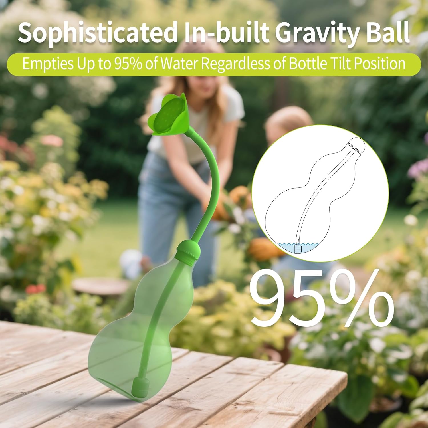 - Where others leave pools of waste, gravity-ball tube sucks up 95% water while its triple-seal plug-in cap locks liquid in even when tossed in a gardening tote.