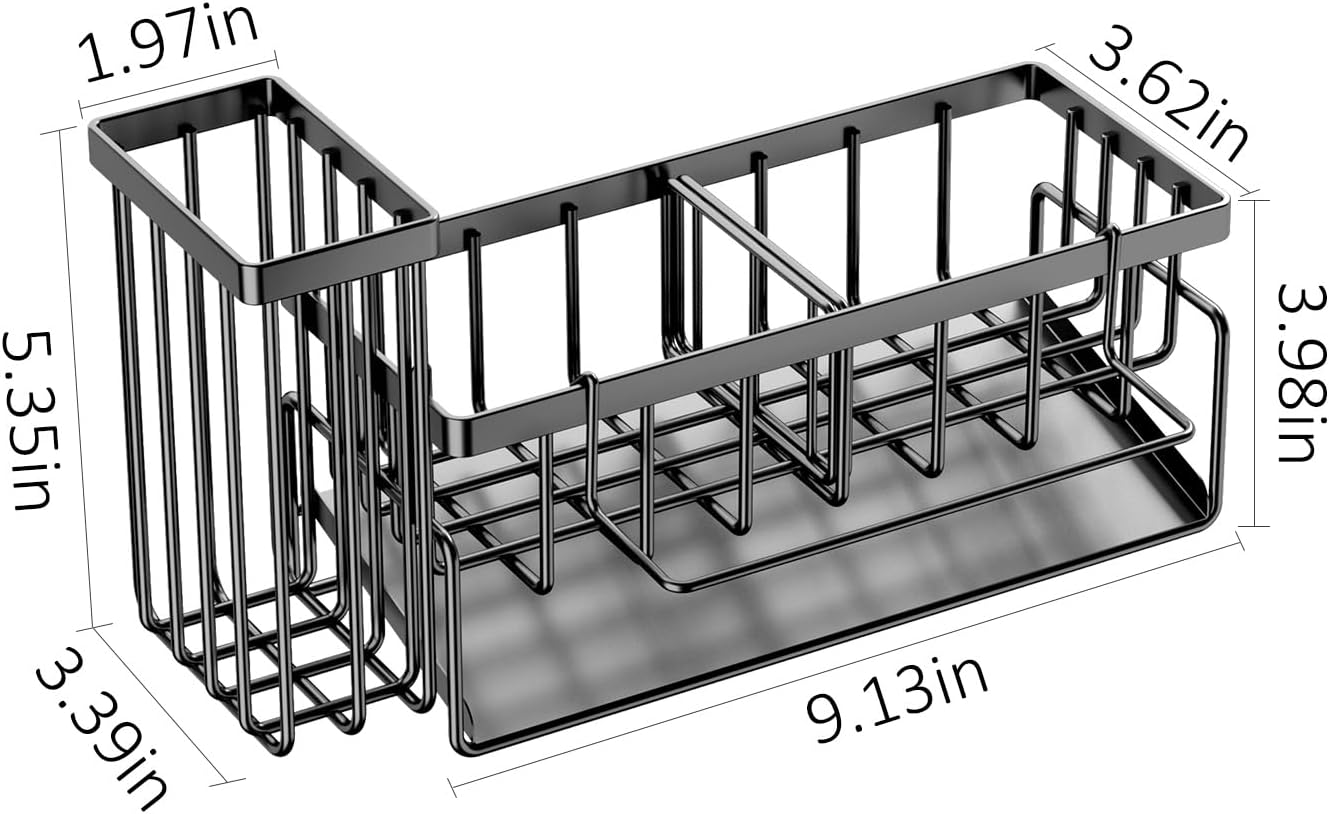 - 【Non-Slip Heavy Duty Sponge Caddy – Won’t Scratch or Move During Use!】Reinforced SUS304 steel frame ensure stability even when scrubbing pots vigorously. Rounded edges protect delicate marble/quartz countertopsfrom scratches, while the rustproof construction survives daily water exposure