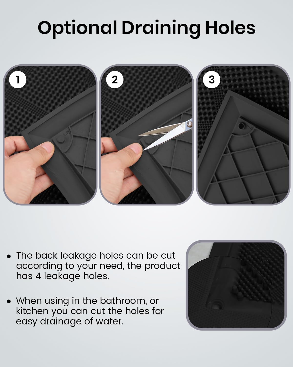 - ⭐𝗠𝘂𝗱&𝗪𝗮𝘁𝗲𝗿 𝗖𝗼𝗻𝘁𝗿𝗼𝗹: Our outdoor mat effectively traps mud, water, and debris from rain, snow, and muddy footprints. The rubber mat keeps your home clean and tidy. For wet areas, four drain holes on the bottom can be cut to improve drainage, making it a reliable doormat for outside entrances.