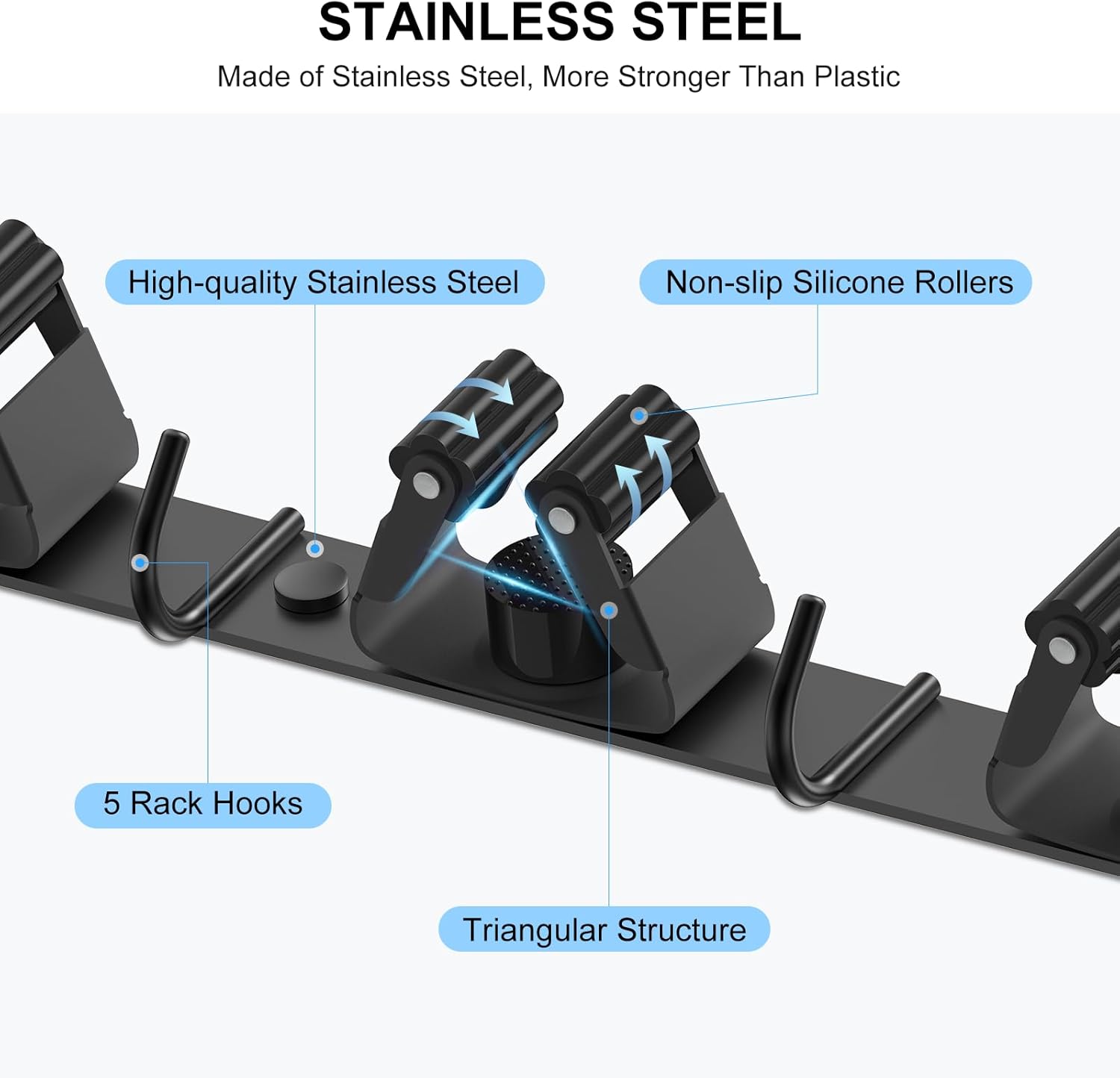 - STURDY BROOM HOLDER: Each mop and broom holder wall mount comes with 4 shelves and 5 hooks, made of high-quality stainless steel, corrosion-resistant, rust-proof, waterproof, and has a longer service life. High-quality materials make it both lightweight and durable