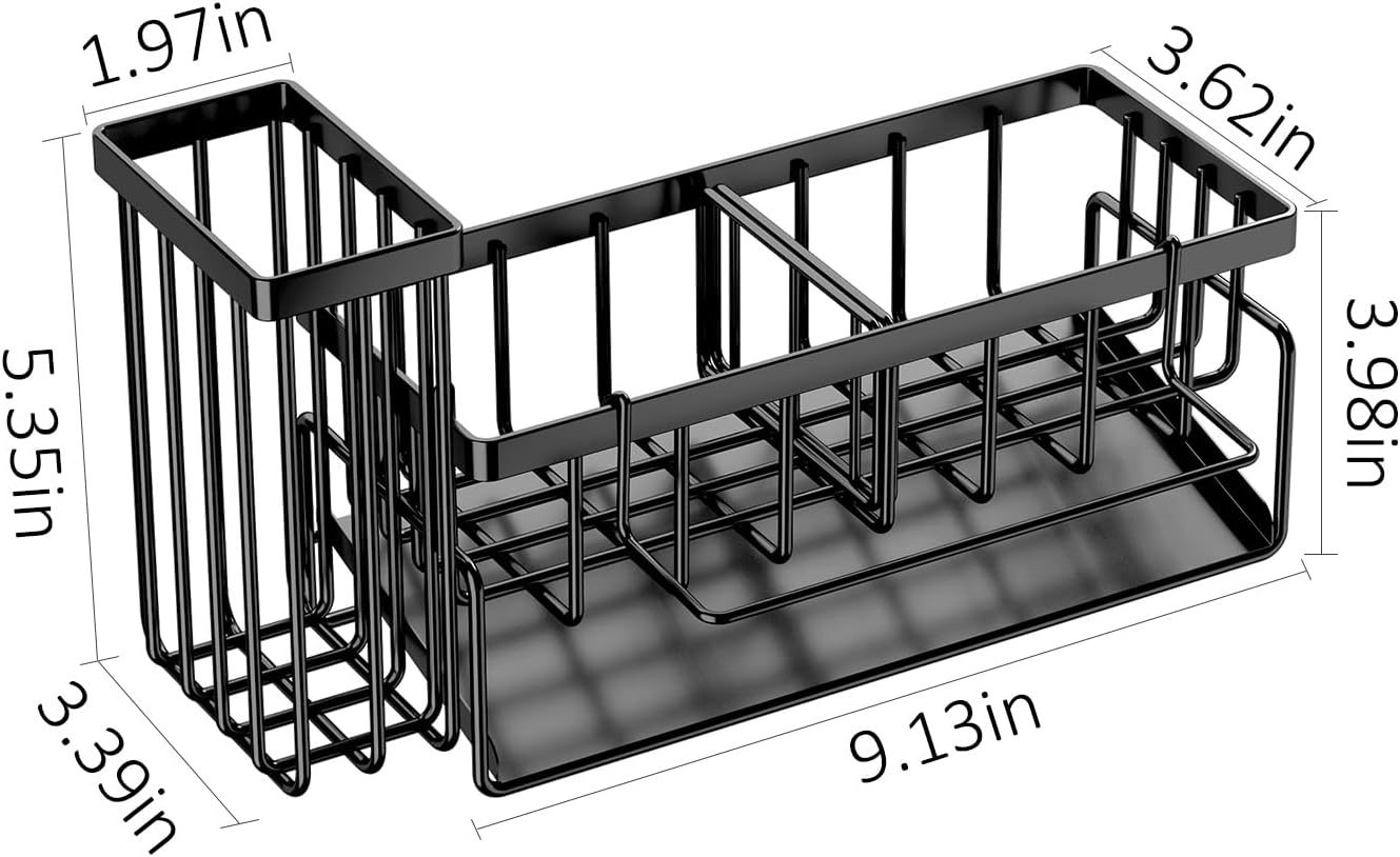 Sponge Holder & Sink Caddy Organizer - Rustproof Kitchen Sink Organizer with High Brush Holder - Kitchen Essentials Countertop Storage Organization (Carbon Black)