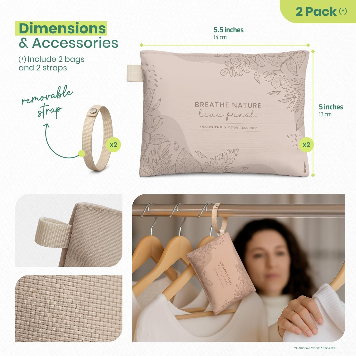 - 100% NATURAL & SAFE ODOR ABSORPTION – Our bamboo charcoal bags act as a powerful natural odor absorber, made from non-toxic materials and completely fragrance-free. A safe and eco-friendly solution for homes with kids and pets—no sprays, no chemicals.