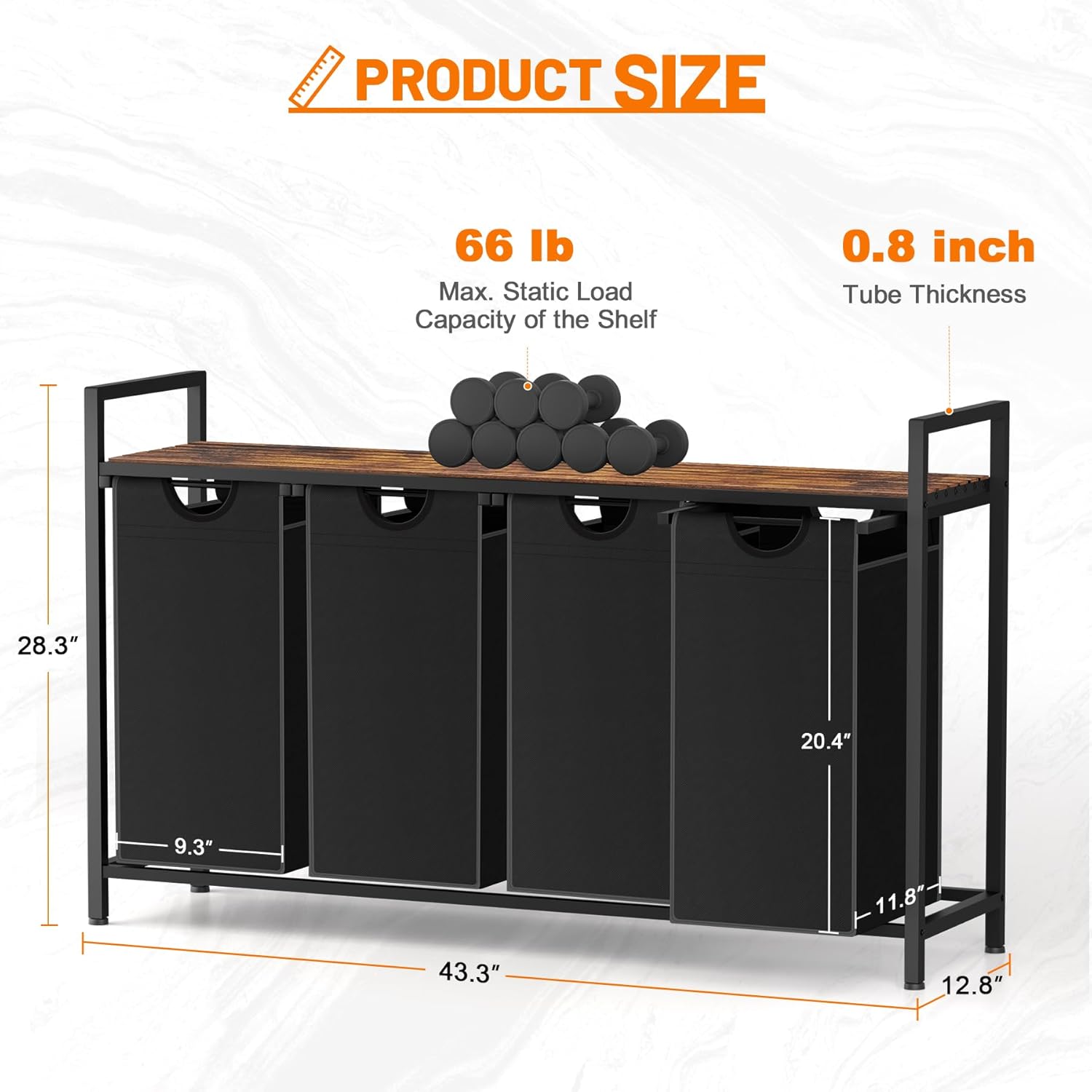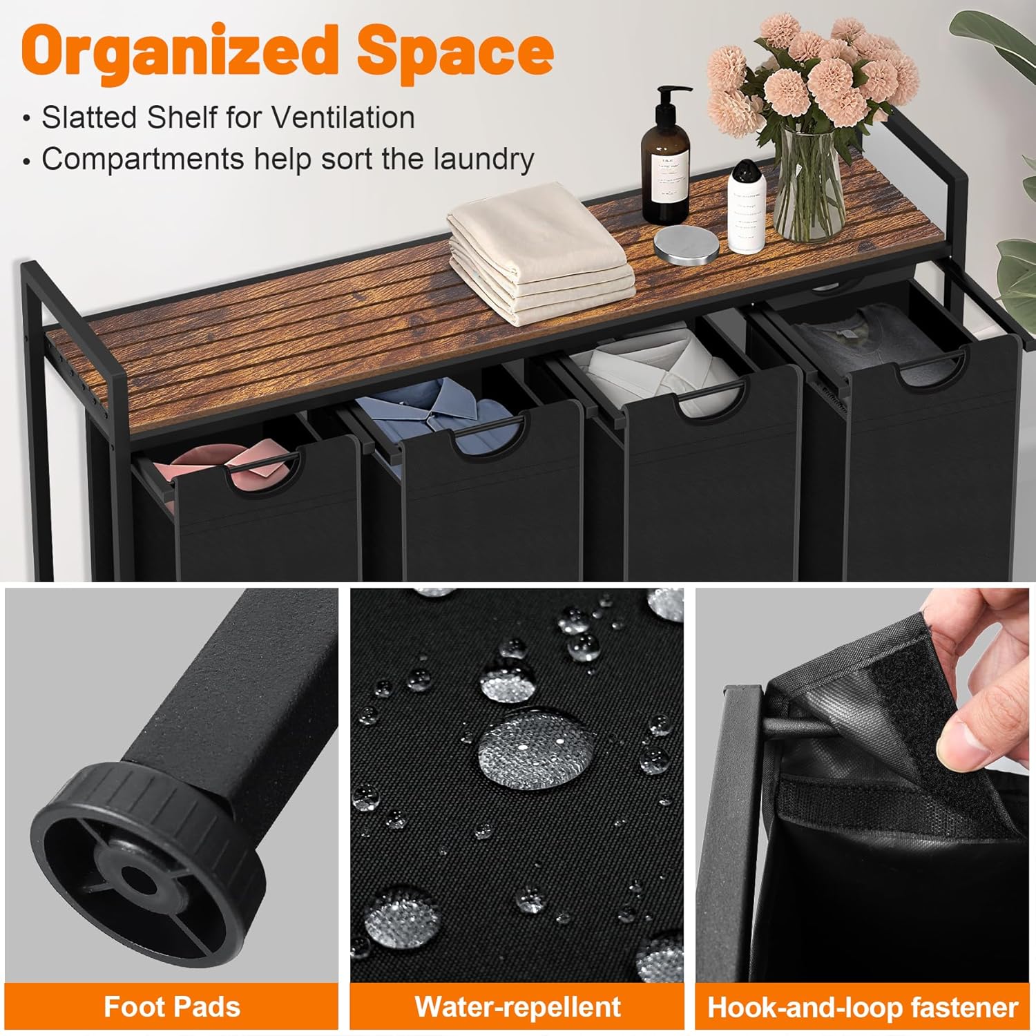 Laundry Hamper, Laundry Sorter with 4 Pull-Out Removable Oxford Fabric Bags Cloth Laundry Basket 4 x 10 Gallons (Black and Rustic Brown)