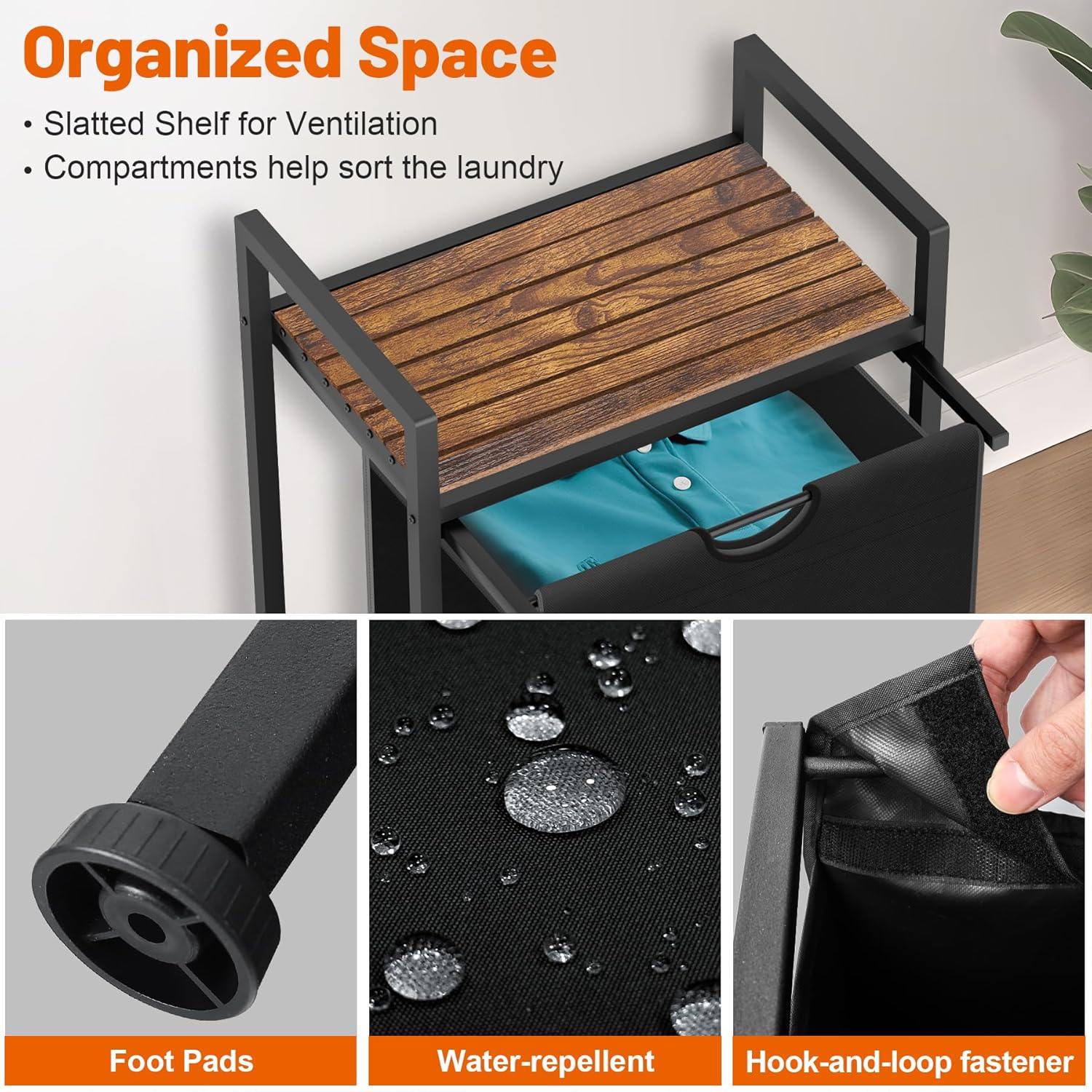 - Large Capacity - Featuring a 16 gallons capacity and an integrated open-shelf design, this laundry hamper helps you make the most of your storage space, easily accommodating both your clothes and accessories.