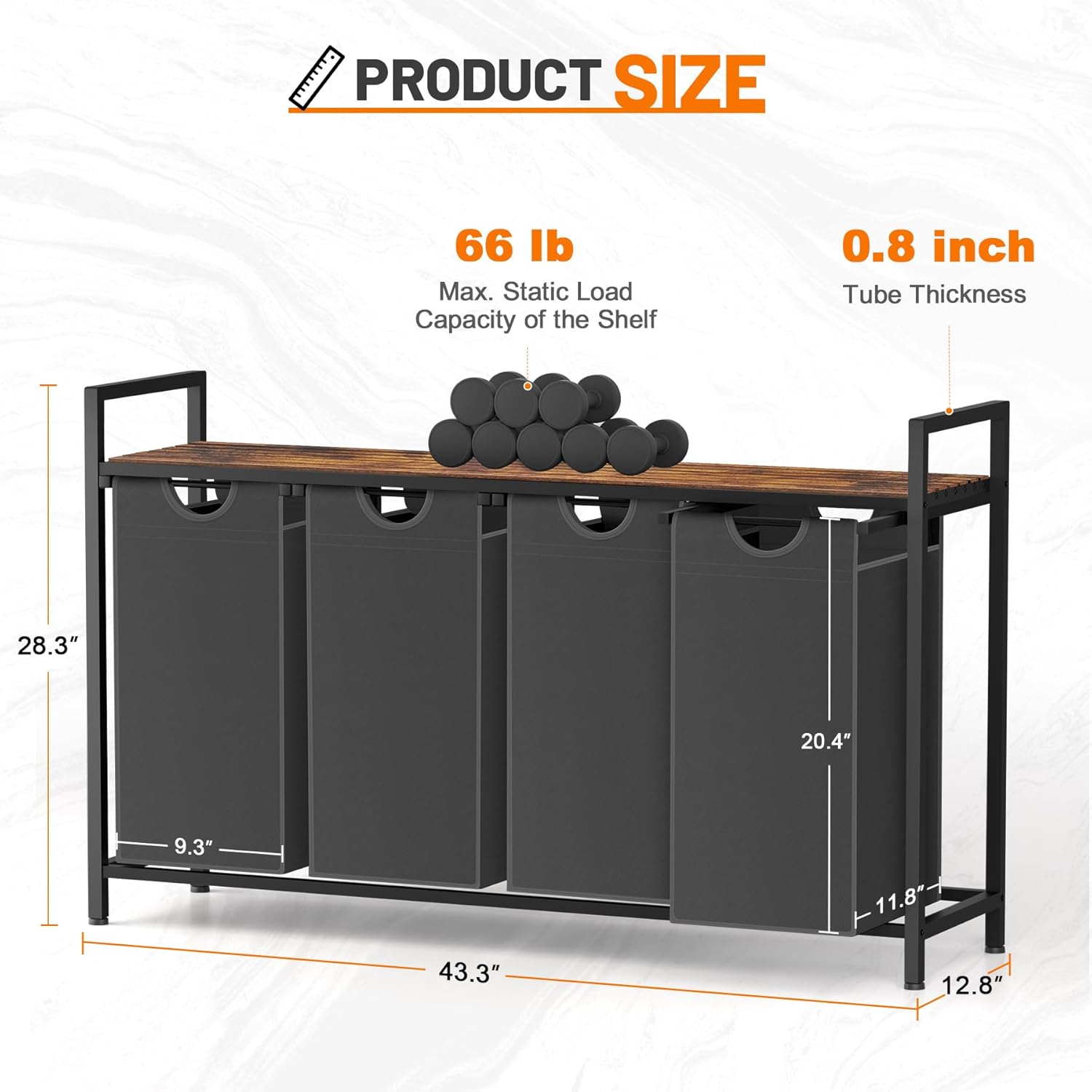- Large Capacity - Featuring a 40 gallons capacity and an integrated open-shelf design, this laundry hamper helps you make the most of your storage space, easily accommodating both your clothes and accessories.