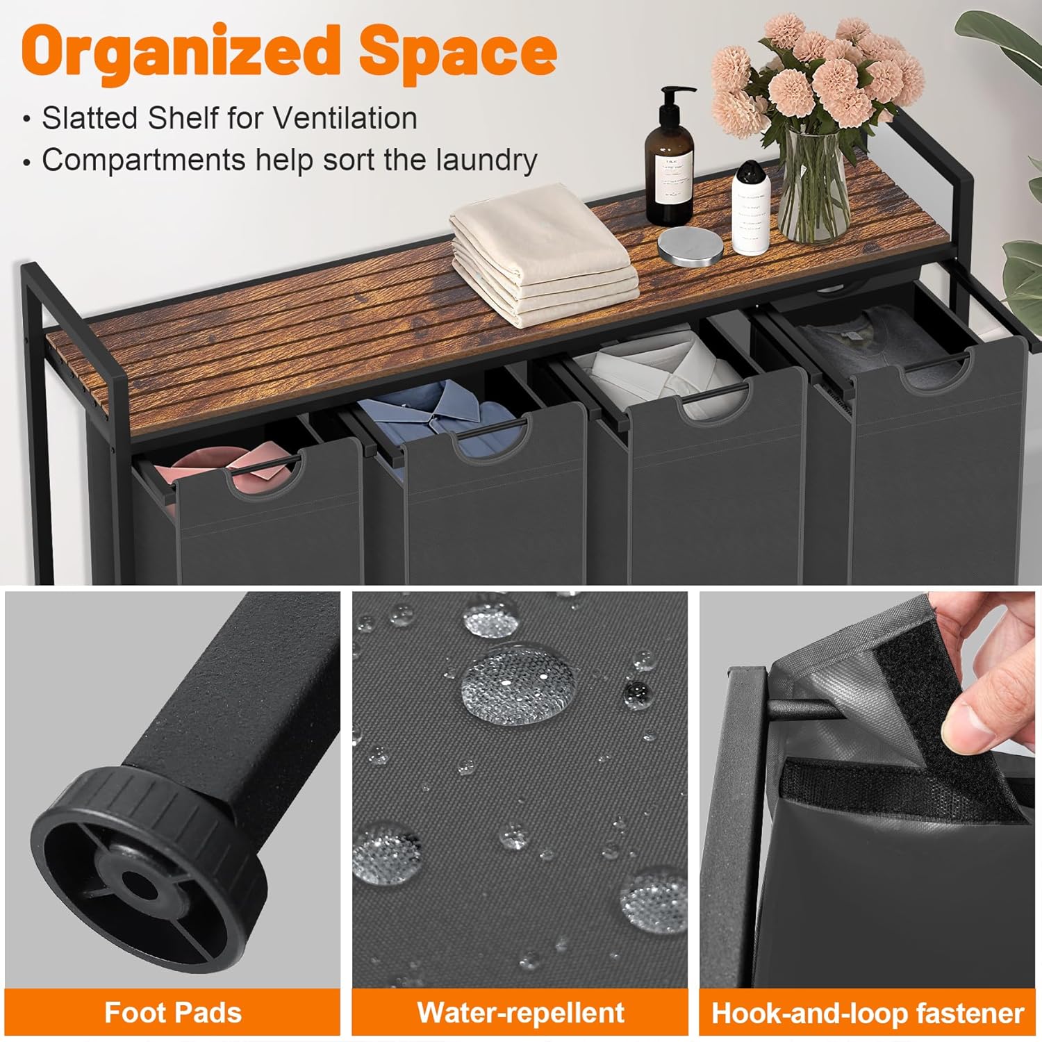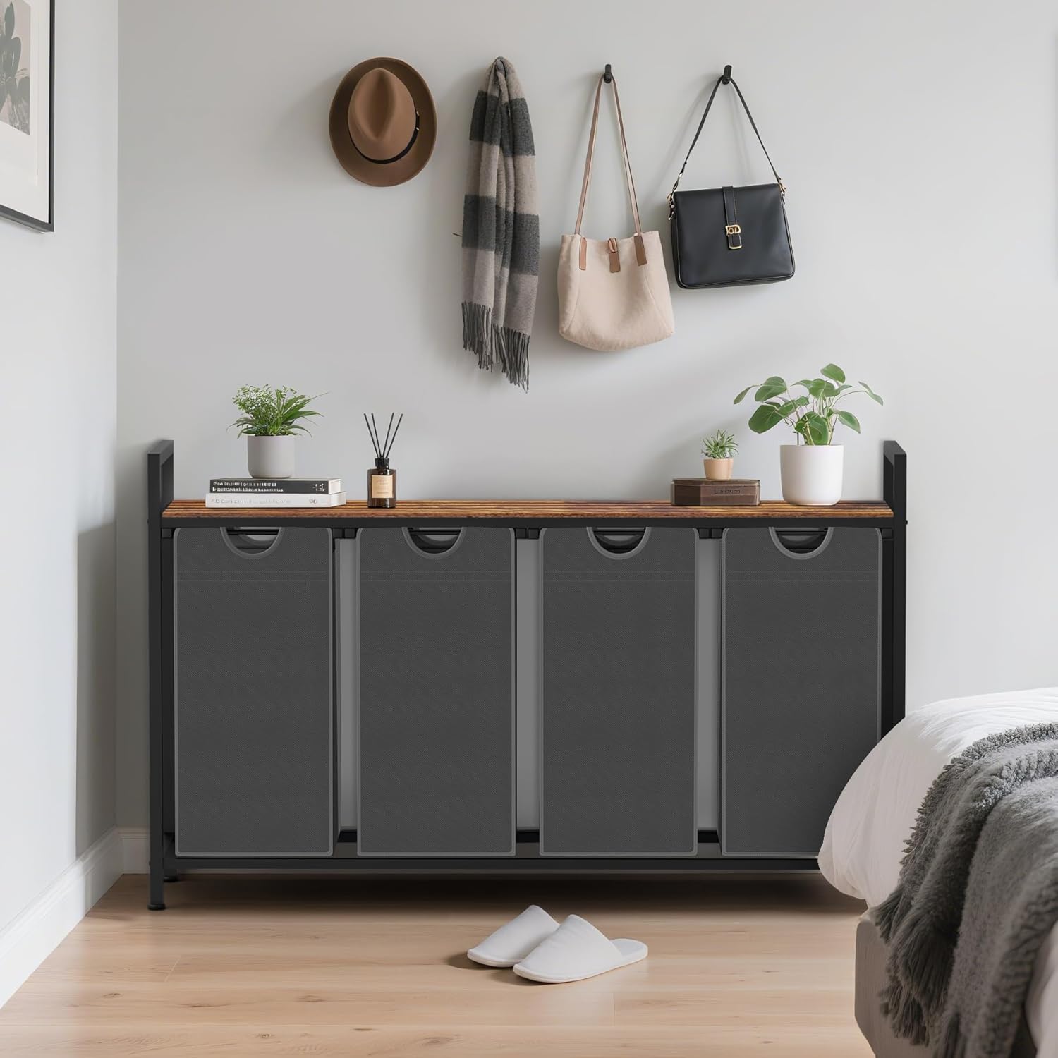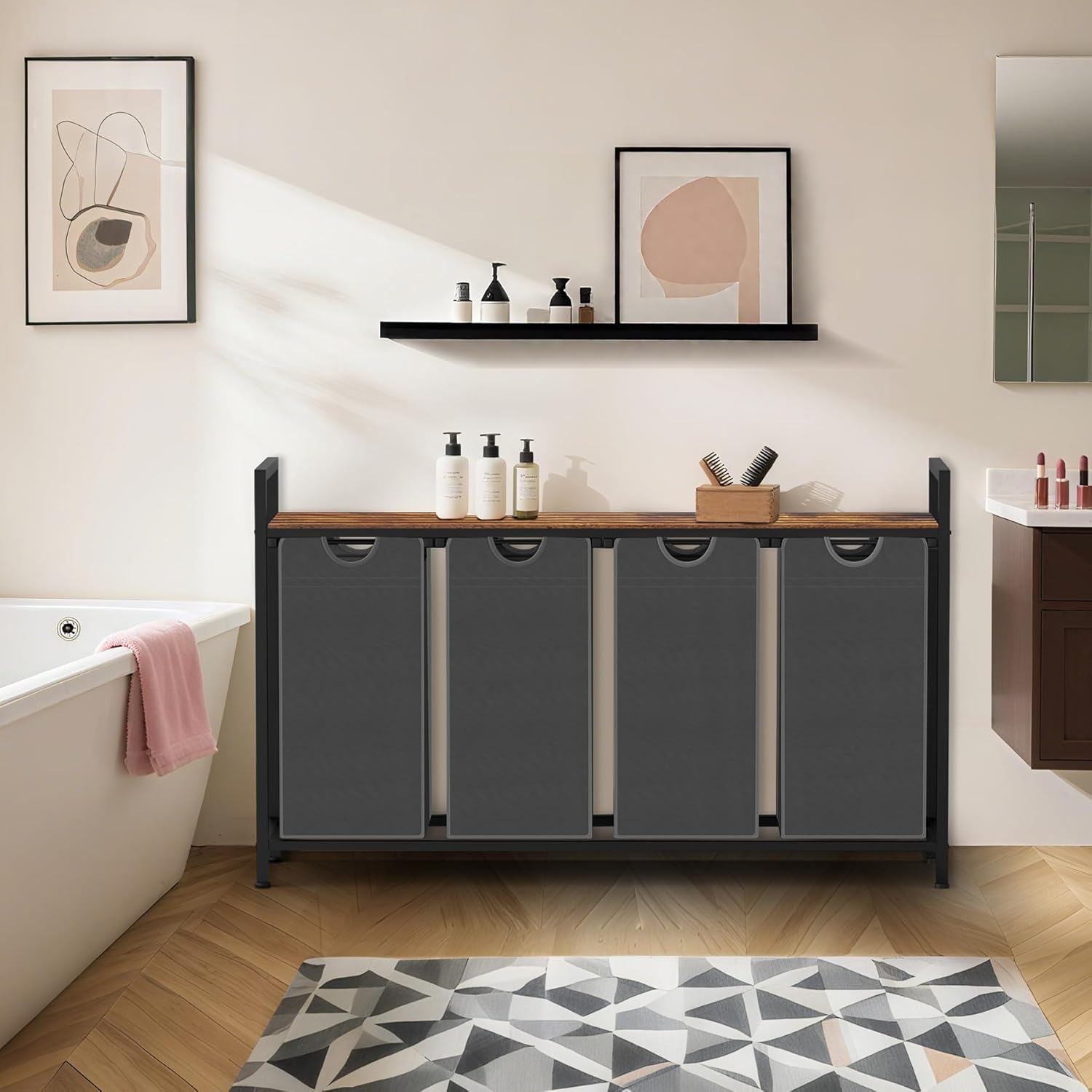 Laundry Hamper, Laundry Sorter with 4 Pull-Out Removable Oxford Fabric Bags Cloth Laundry Basket 4 x 10 Gallons (Grey and Rustic Brown)