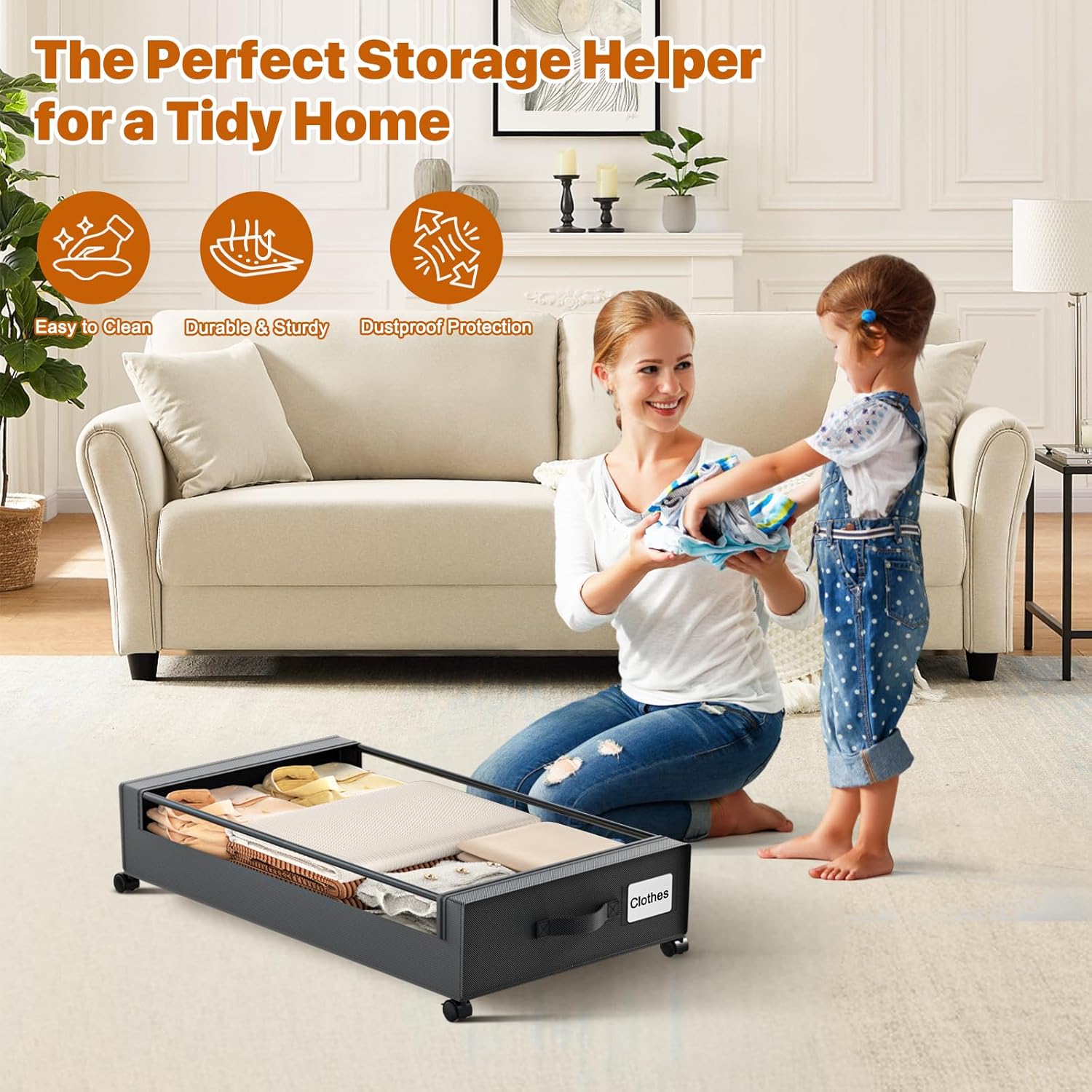 - Transparent Window & Label Design: The rolling under-bed storage bins feature transparent lid windows and label slots, making it easy to identify contents without opening multiple containers. This design helps prevent misstorage and ensures you can quickly locate items. The double zipper bottom and high-quality material keep dust, moisture, and dirt out, keeping your items clean and organized.