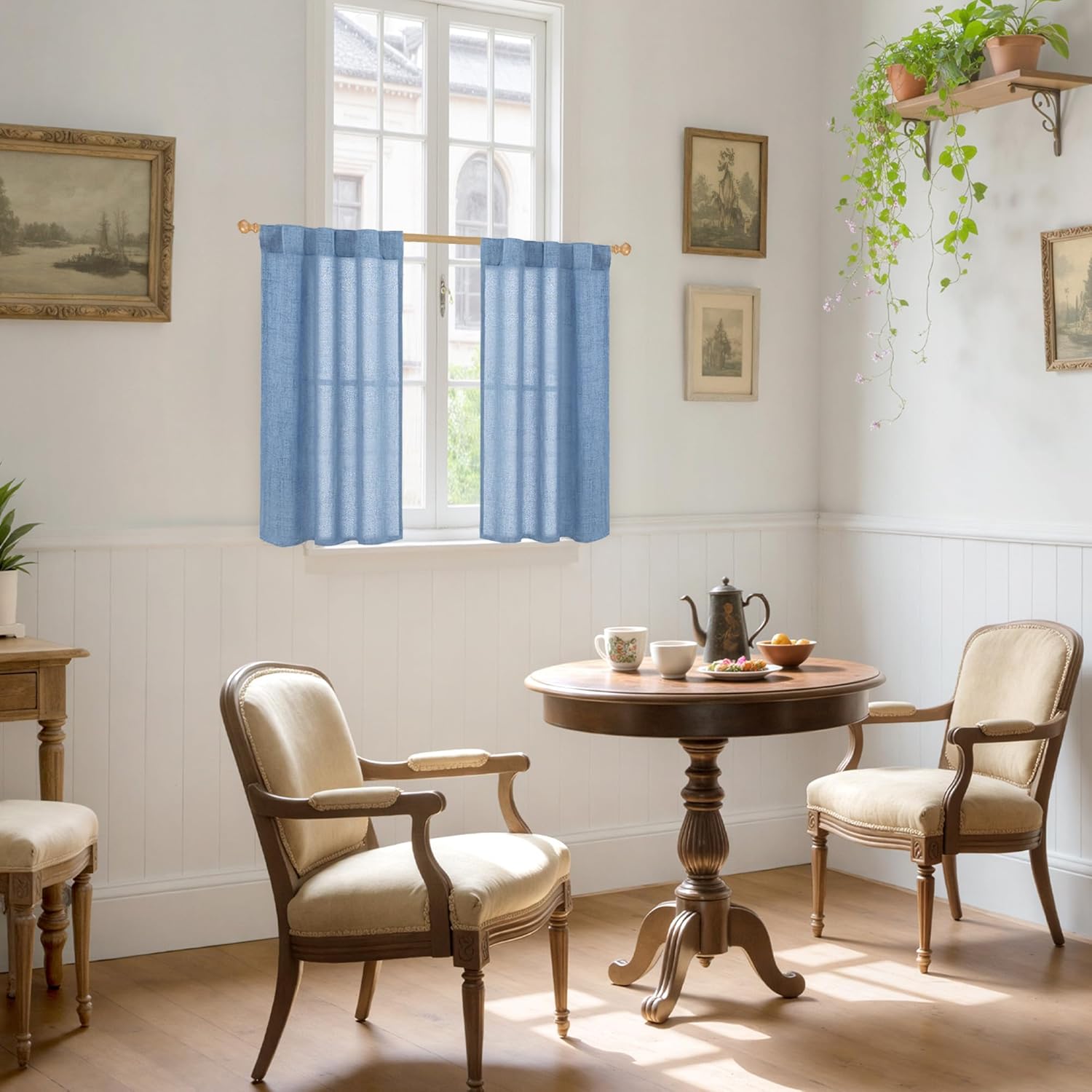 YoungsTex Denim Blue Linen Curtains 40 Inch Length for Bathroom Window, Small Drapes with Rod Pocket Back Tab Light Filtering Coastal for Cafe Kitchen Window Over Sink, 2 Panels, 30 X 40 Inch